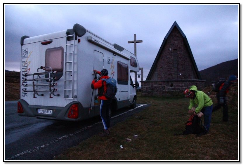 En Ibañeta, casi a oscuras y un frio que pela.