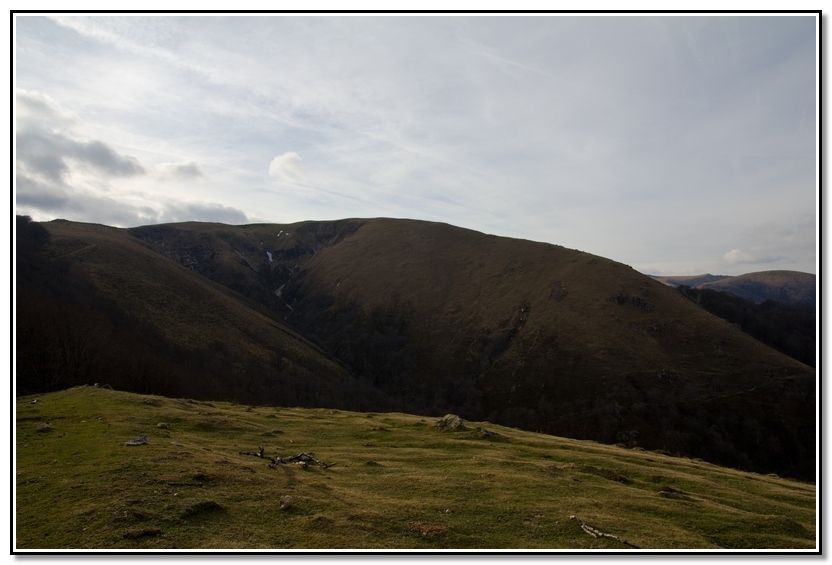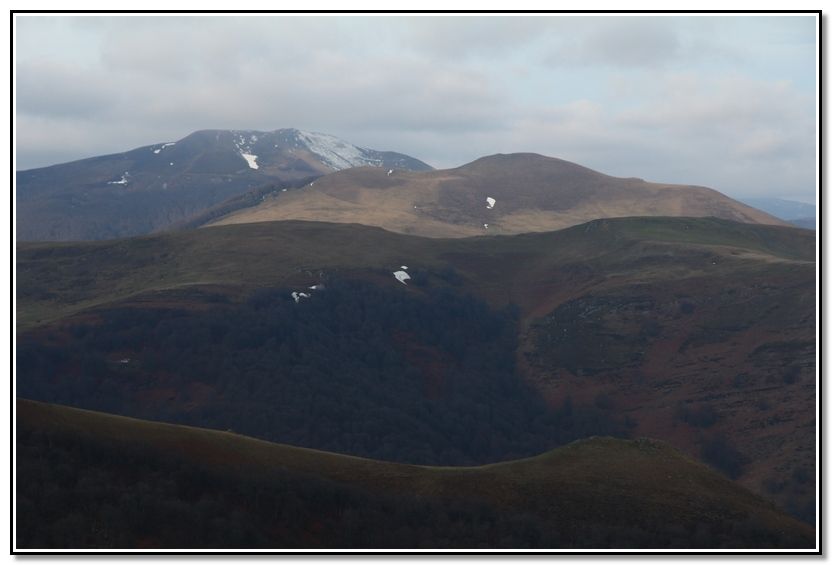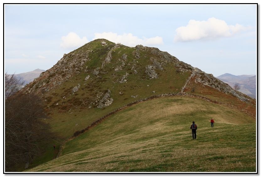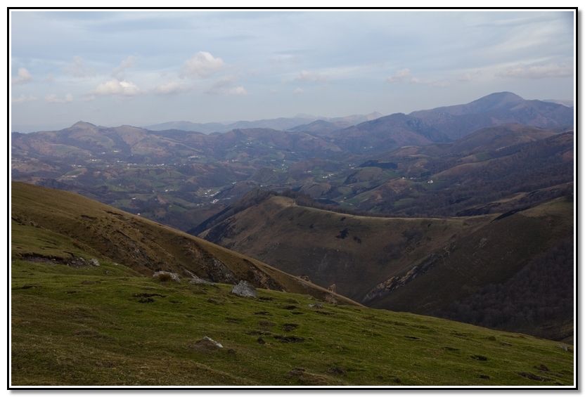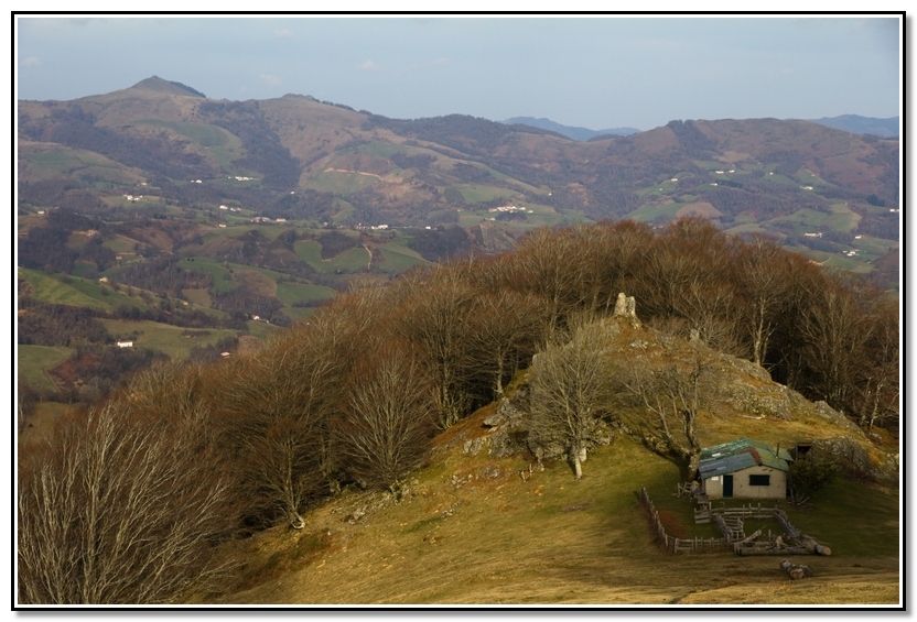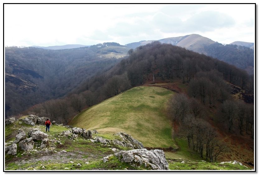 Loma y punta rocosa de Harriondoko Kaskoa, Albako Harria y Autza, detrás Larrun y Atxuria.