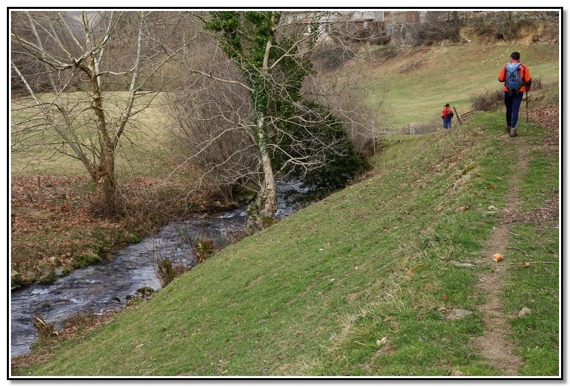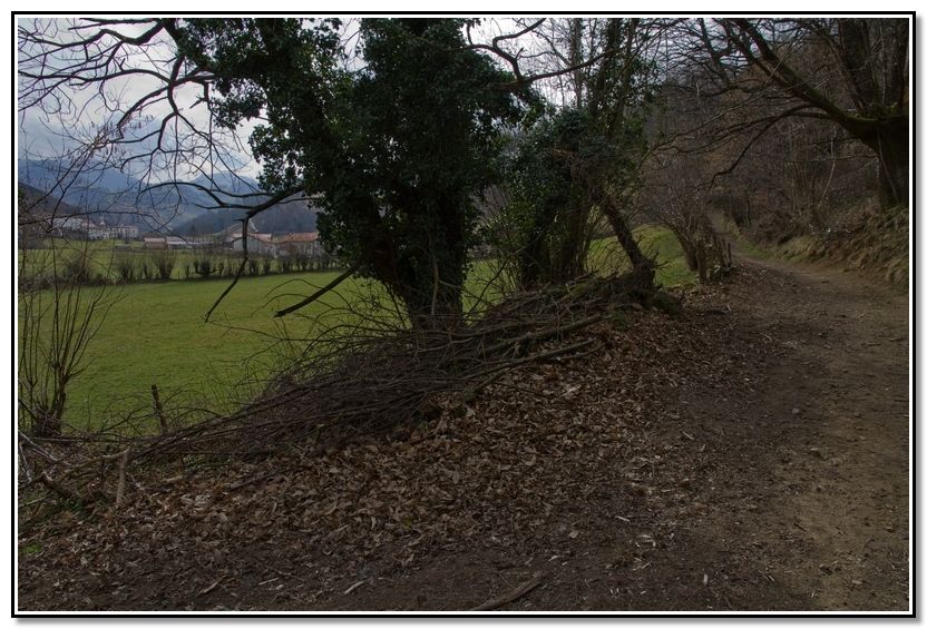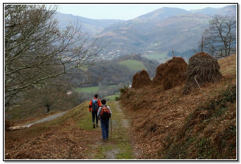 Por este sendero tan bonito, rodeados de metas, vemos, al fondo, Elizondo. Ya queda poco.