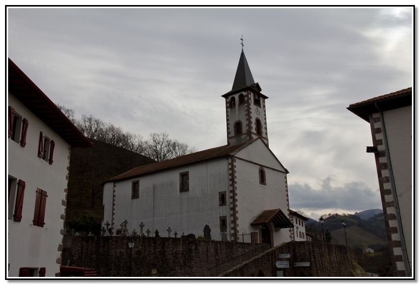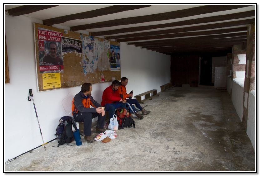 Almuerzo en la iglesia de Urepel, media hora, en el pórtico, hay agua.