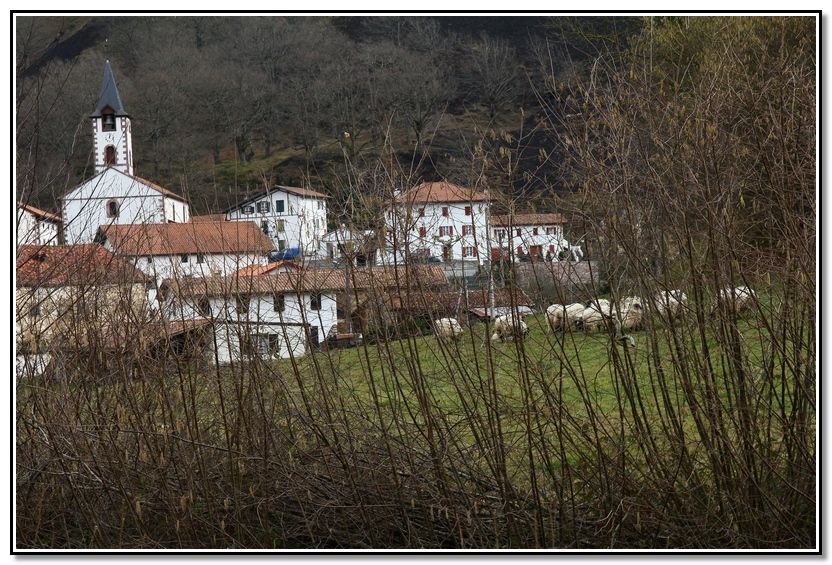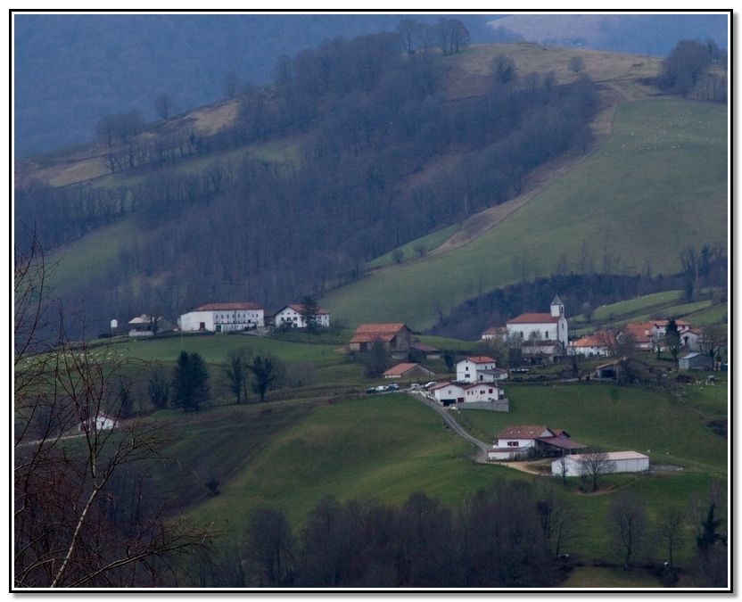 Casas e iglesia de Urepele, Harriondoko Kaskoa y Urtarai. Todavía se eía de donde veníamos.