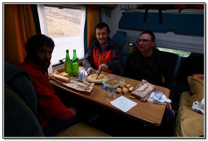 Con Txema, Carlos y Periko. Dejamos el coche de Carlos en Elizondo y seguimos a Ibañeta por Iruña con la autocaravana de Txema.