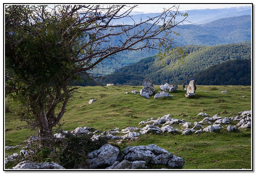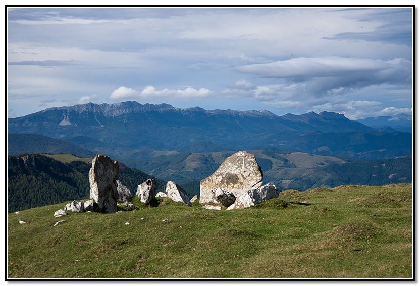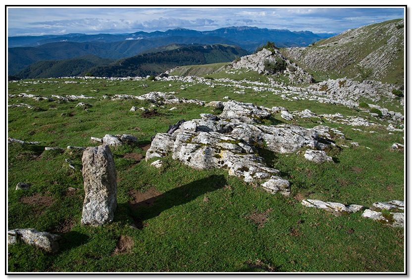 Dolmen de Zearragoena, Sastarri, Domo de Ataun, al fondo Aizkorri, Aloña, Gorbea, Anboto, Udalaitz …