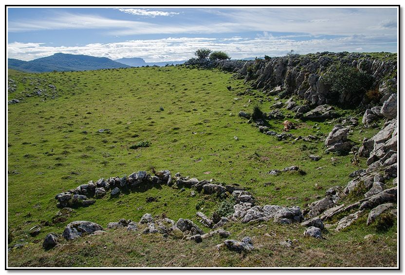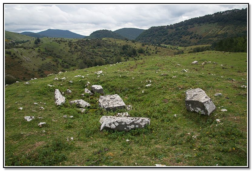 Artamugarri de Uelo 3, detrás se ve el muro de rocas del saroi de Uelo 2. Detrás Sastarri.