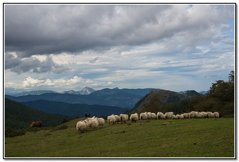 Las ovejas a su aire. Anboto parece que está muy cerca.