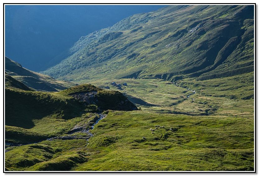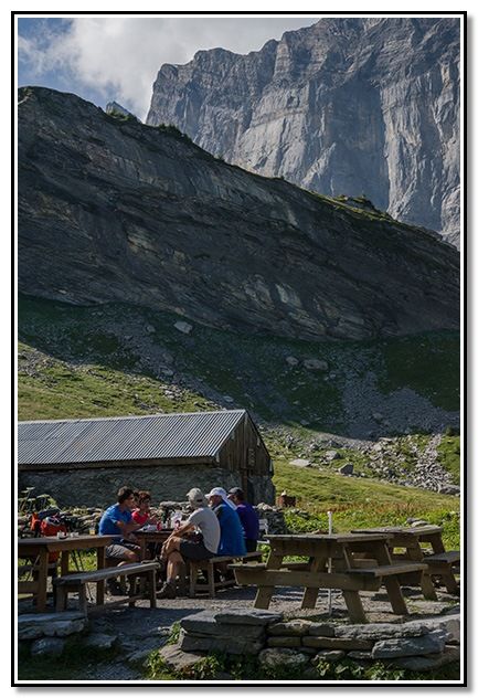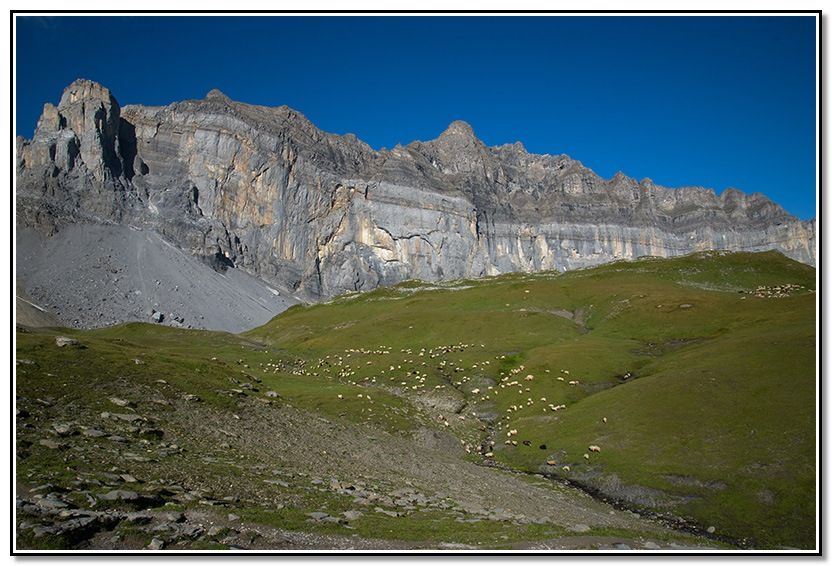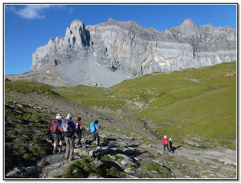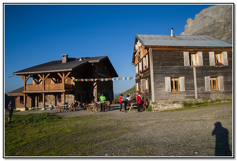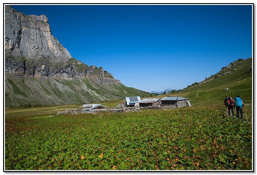 Los chalets de Moëde y un rebaño de ovejas, por ahí pasamos en la anterior etapa para llegar al refugio.