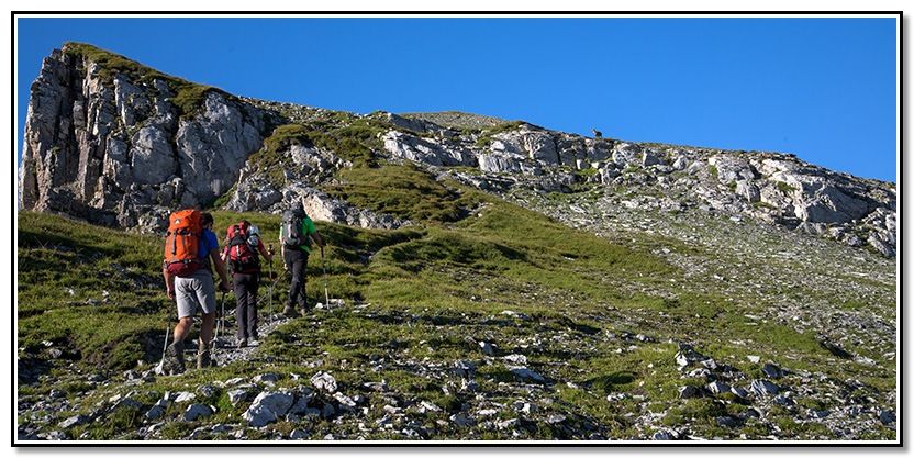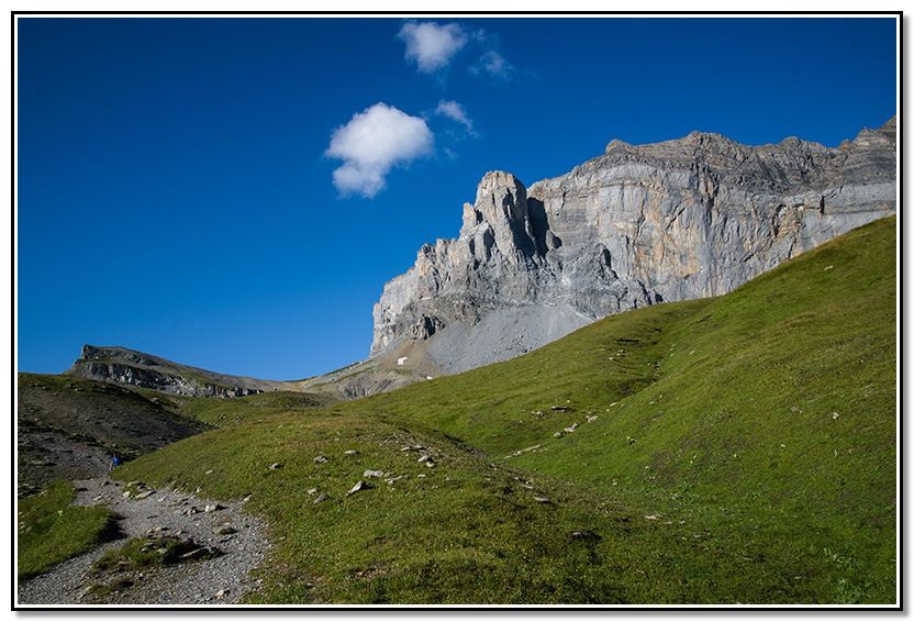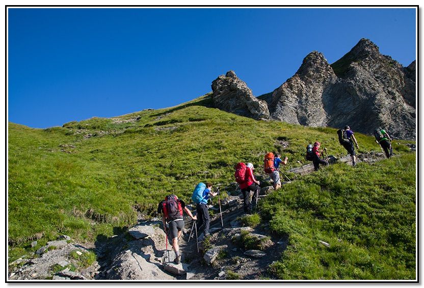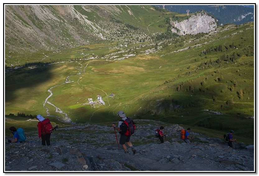 El principio de la cuesta desde el refugio de Grenairon hacia el Buet, se ve el refugio al principio de la aldapa