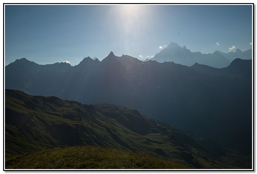 Al salir ya el sol había salido, bonito dia. Si antes veíamos el Montblanc, ahora los Fiz.
