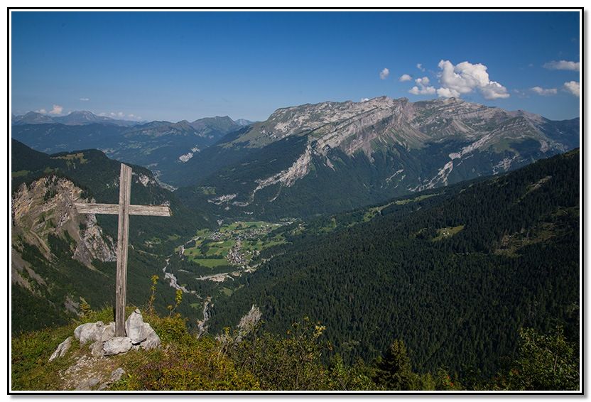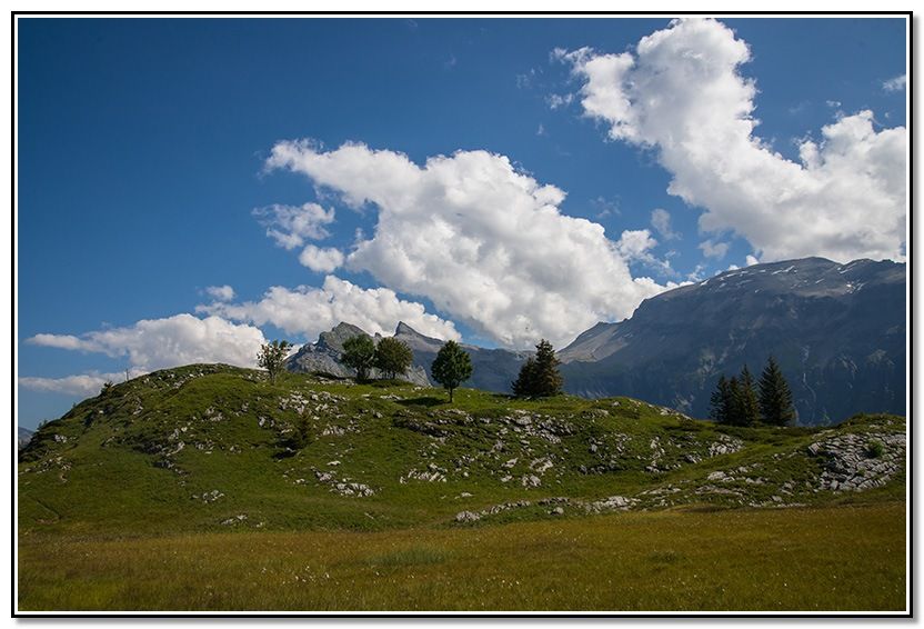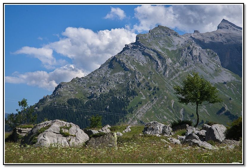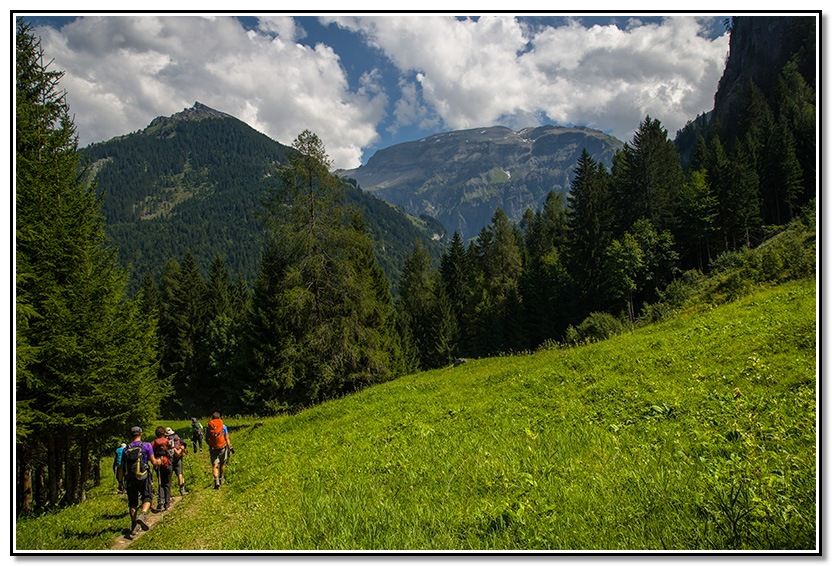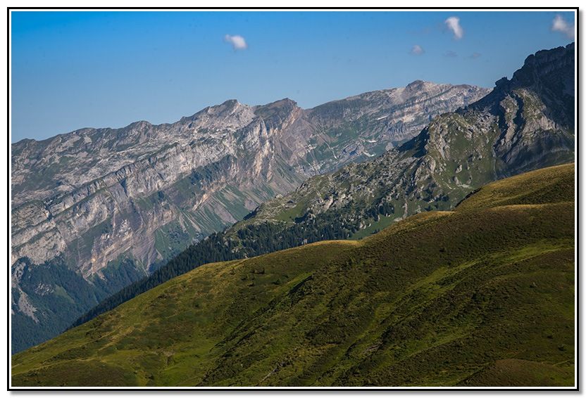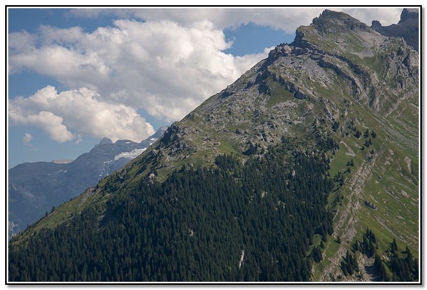 Cuando el bosque se abría un poco, entre praderas, veíamos el Mone Buet. Allá arriba, que bien me lo había pasado.