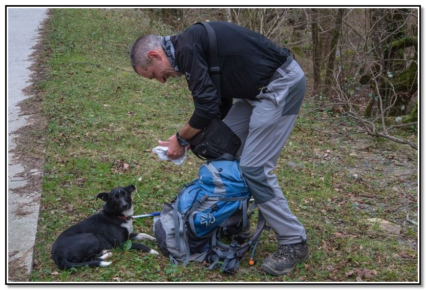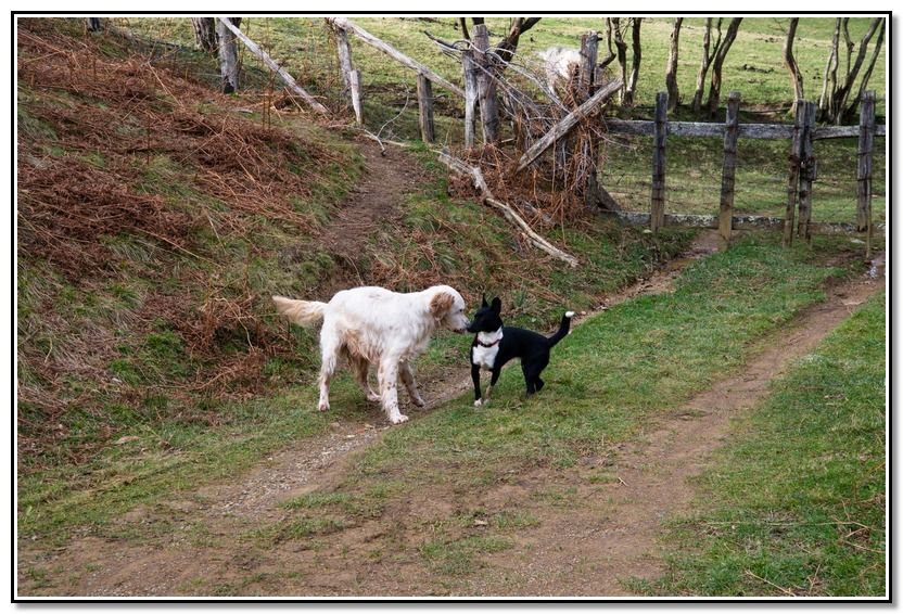 Al final, ya cerca de Etxalar, se encontró con una amoña que paseaba, enseguida la reconoció, se acercó a ella y le ladró suave, en cuanto la señora le vió se alegró, nos preguntó por donde había andado, cuando le dijimos hasta donde había llegado se asombró, pero nos comentó que estaba acostumbrada, de todas formas creo que el animal, para otra vez, se asegurará y preguntará a los que quiera acompañar por si acaso ...
