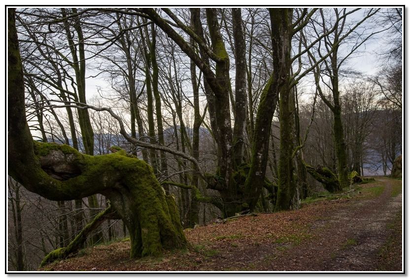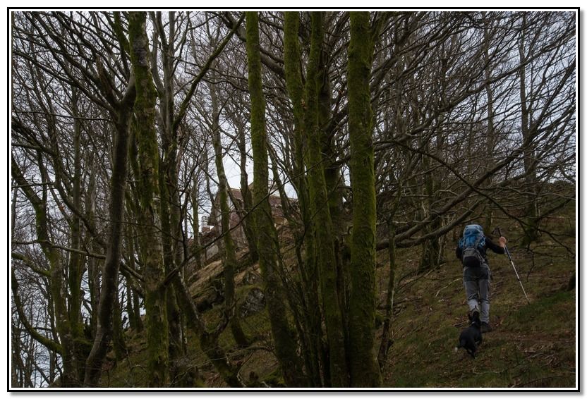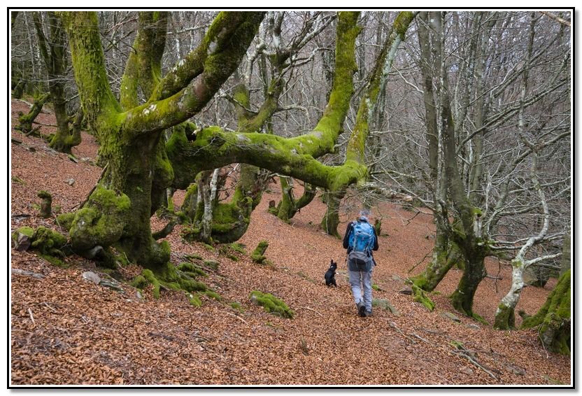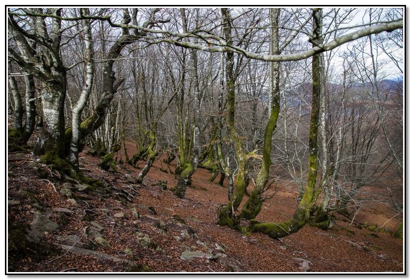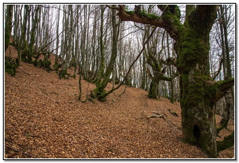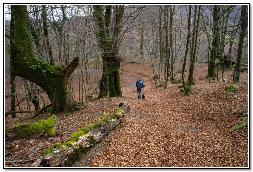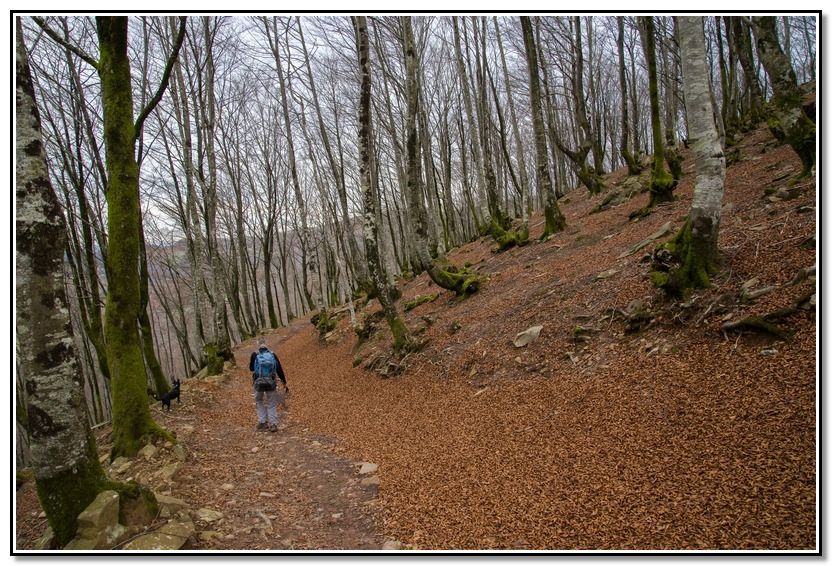 Después de para un ratillo para hacer el amaiketako y darle algo de chocolate a la perra, seguimos por un hayedo que, aunque es invierno, mantiene su imagen