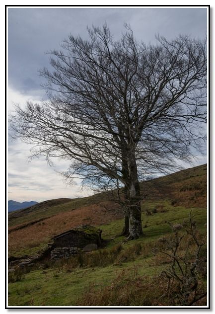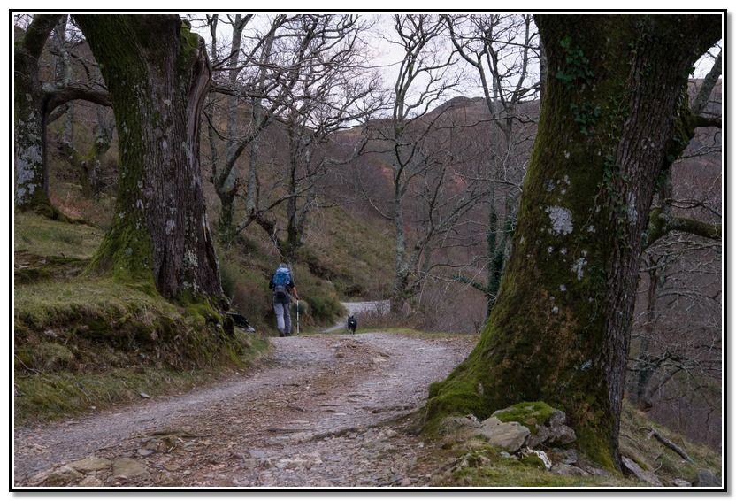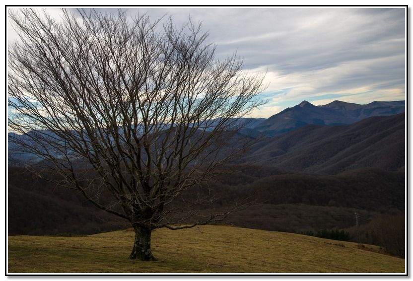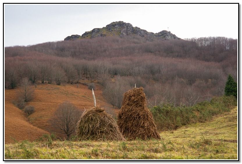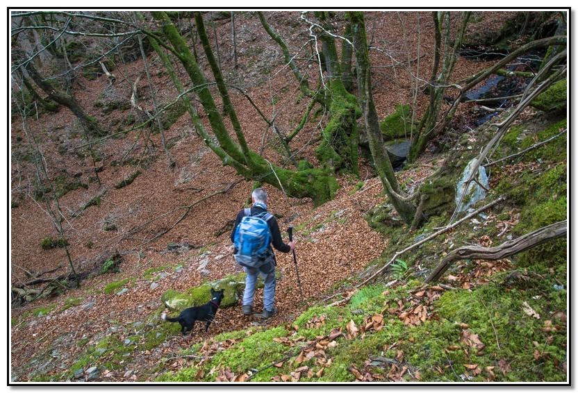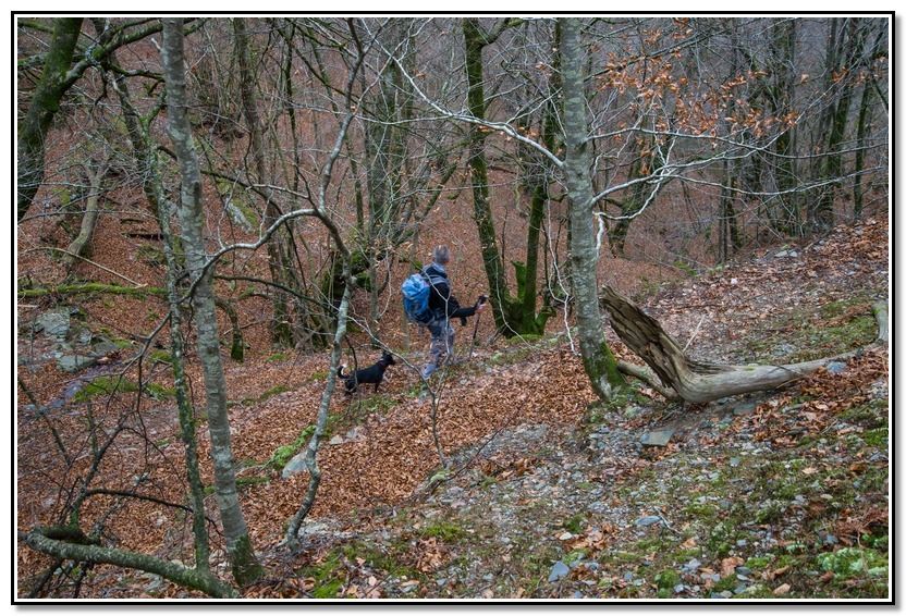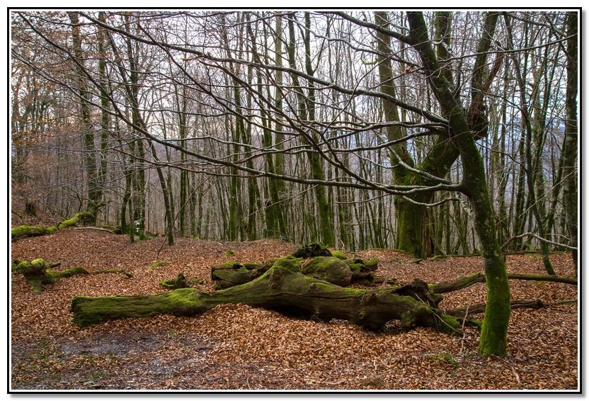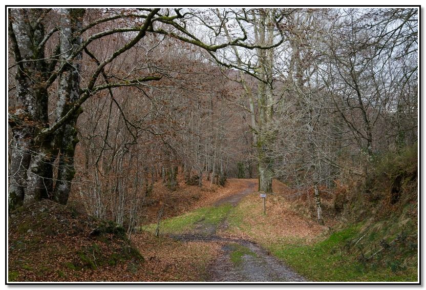 Después de para un ratillo para hacer el amaiketako y darle algo de chocolate a la perra, seguimos por un hayedo que, aunque es invierno, mantiene su imagen