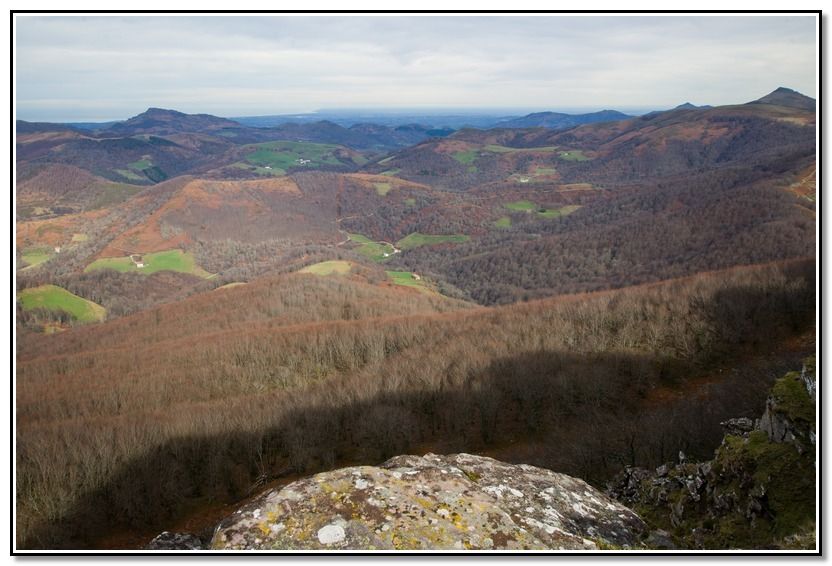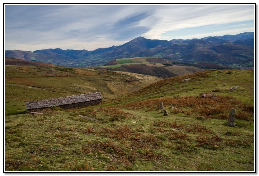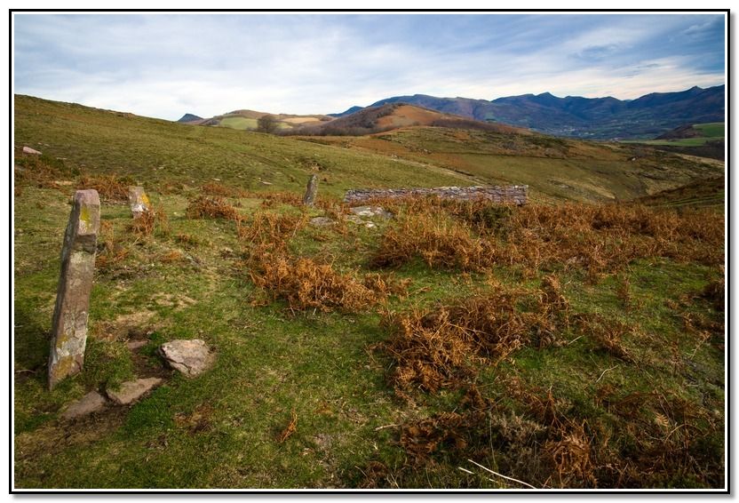 El cromlech de Legate. Las cimas de Alkurruntz, la loma de Larrondo, Atxuela ...al fondo Gorramakil, Gorramendi, Aizpitxa, Iparla, collado de Izpegi ...