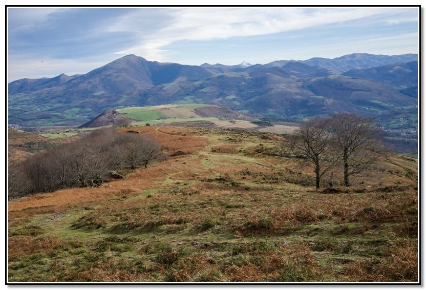 El collado de Plazazelai. Paretazarreta y Aizkolegi, detrás el collado de Urtalepo, Asketa y Larrondozar. Al fondo Aiako Harria y Manttale