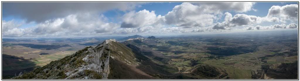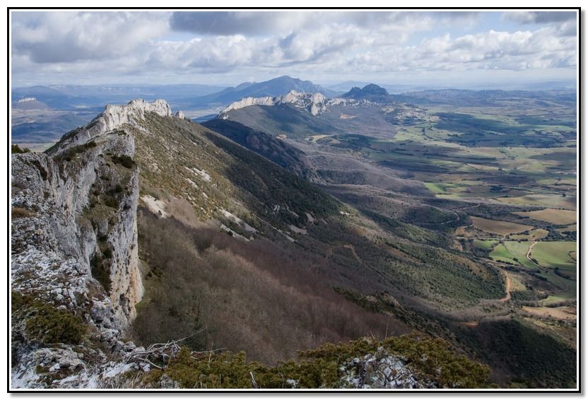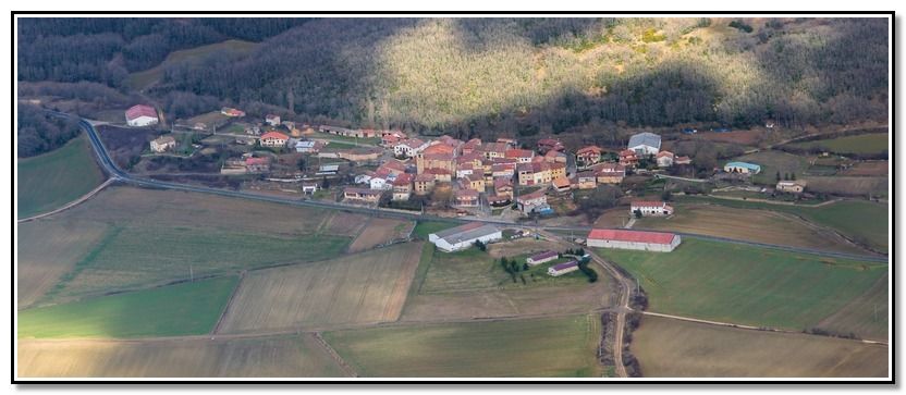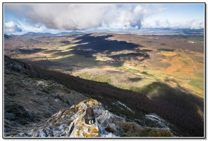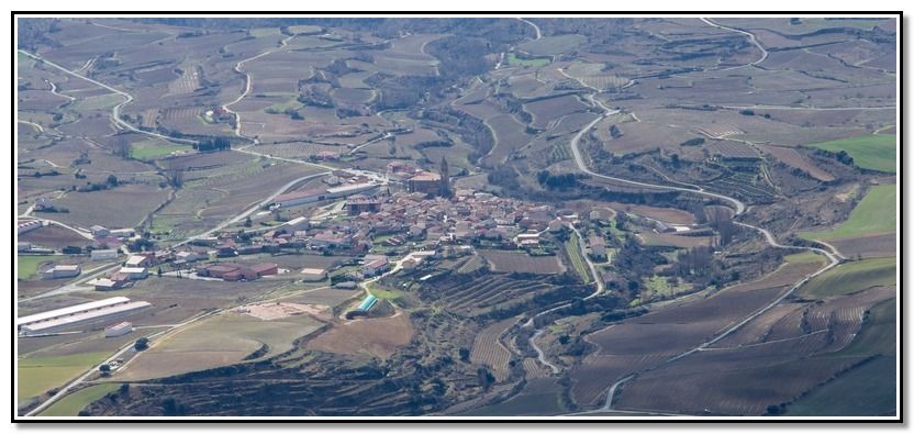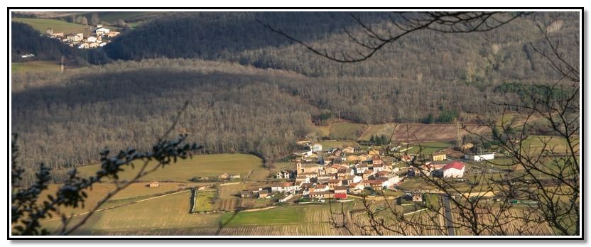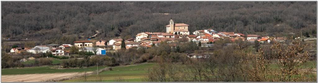 Desde Peña del León, Navarrete. San Tirso y Bonete. Puerto de Cripan. Peña Alta, La Población, al fondo La Muela, Lokiz y Yoar. Pueblos de San Roman de Kampezu. Meano y Cripan.