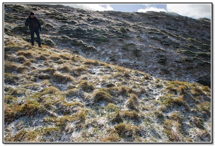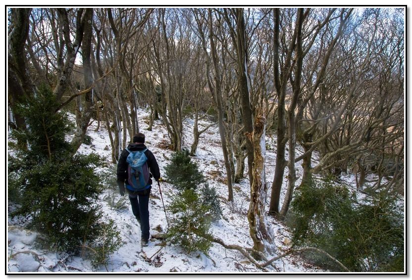 Lo peor era la poca nieve que había caido que, a pesar de dejar unos rincones muy bonitos, no ayudaba nada para andar por esas crestas, la piedra mojada,un poco de nieve y algo de hielo en algún sitios.