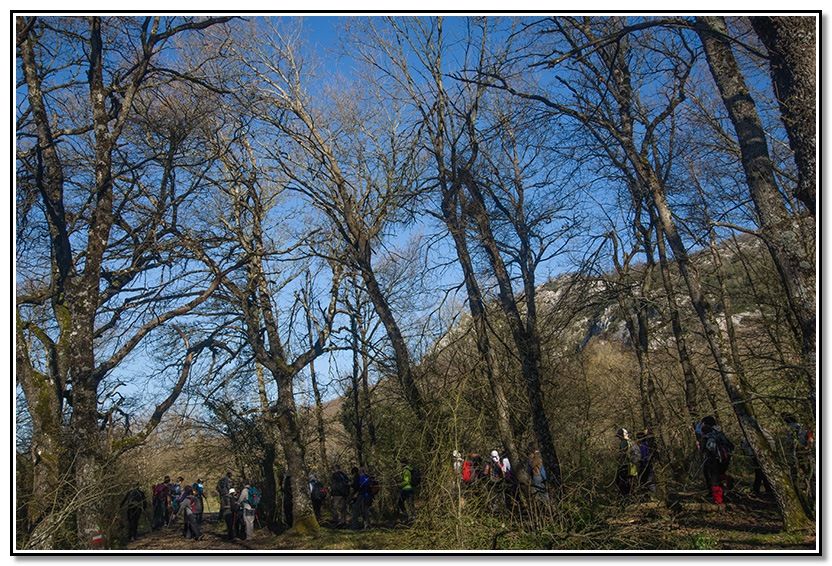 Seguimos por un precioso robledal, todavía no tiene hoja, lo que nos da la oportunidad de ver a través de sus ramas.