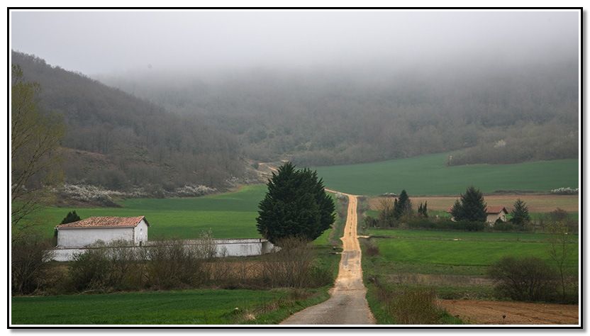 El pueblo de Berganza, los campos ya han cambiado de color, ahora toca un verde muy bonito.