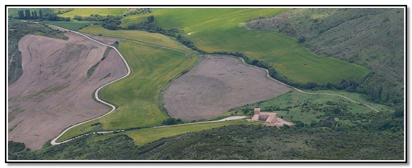 Ermita de santa Barbara. Salinas de Ibargoiti, Al fondo Alzorriz, Peña Izaga y santa Agata.
