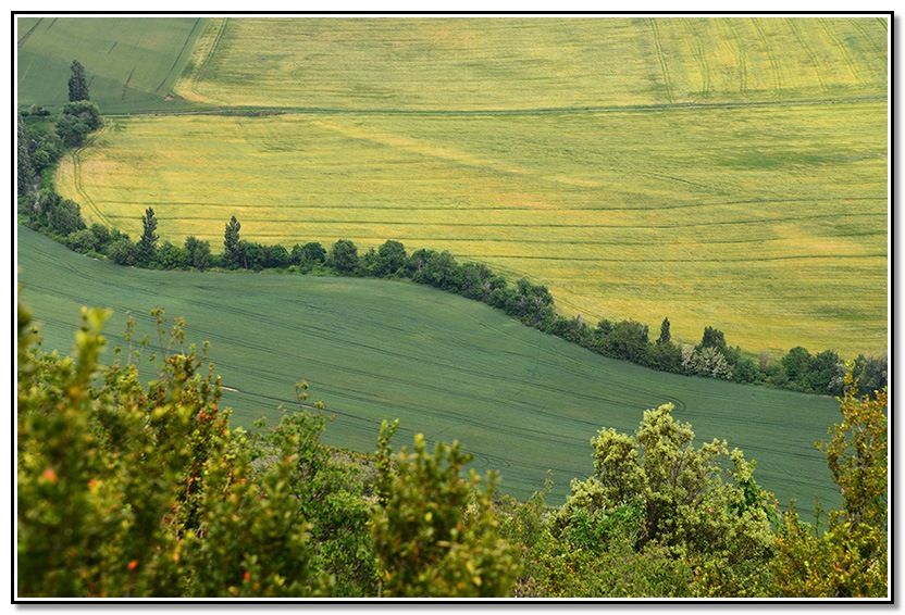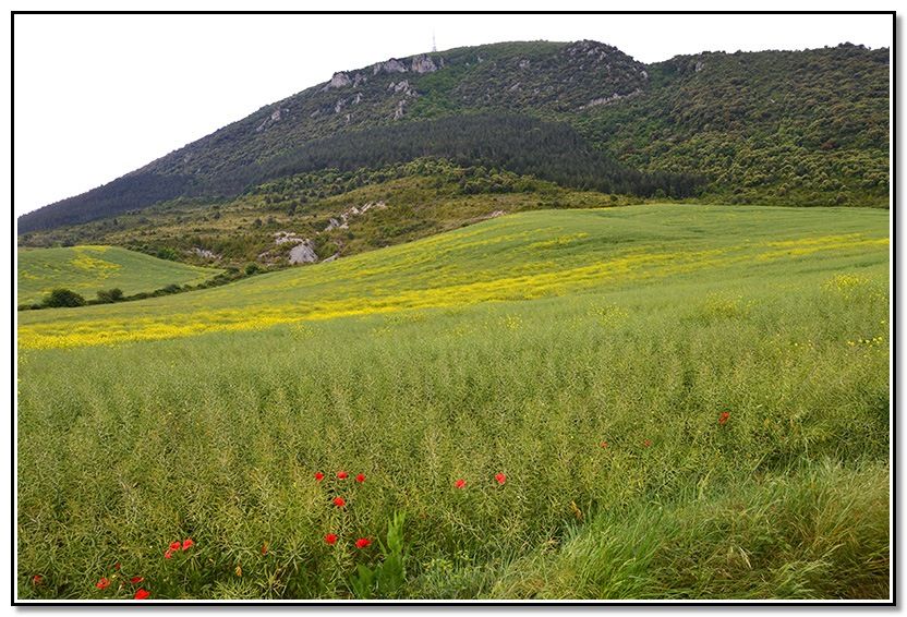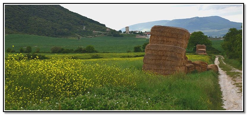 Luego volver a Yarnoz casi pasando por Monreal para llegar cruzando campos llenos de verdes y amarillos.