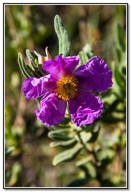 Y unas Jara Negra o Jaguarzo Morisco o Cistus Salviifolius. Muy bonitas. Vamos rodeados de montón de colores de flores diferentes.