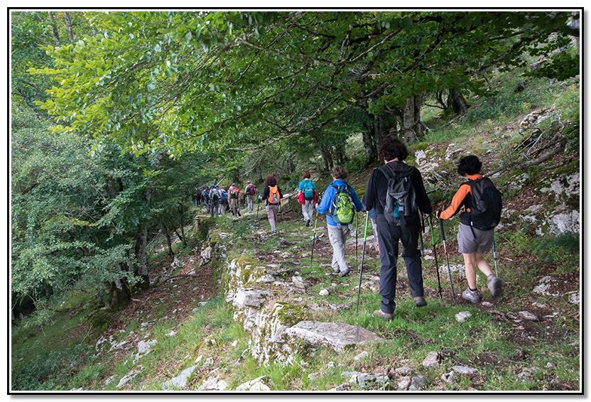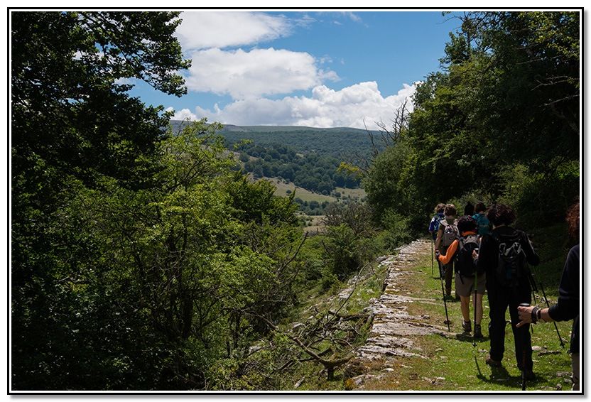 De aquí bajamos hacia el valle de Zalbide por la una vieja calzada que atravesaba todo el macizo. Todavía quedan zonas en muy buen estado y