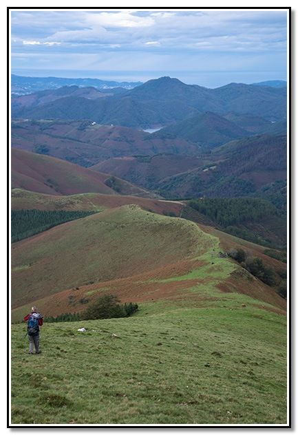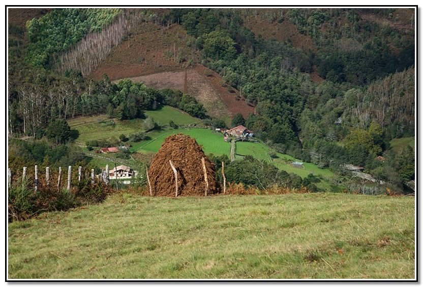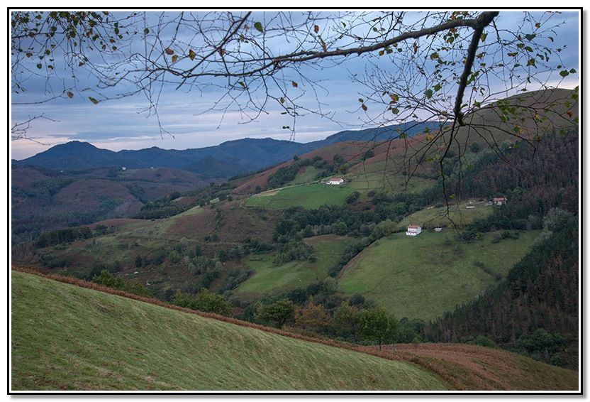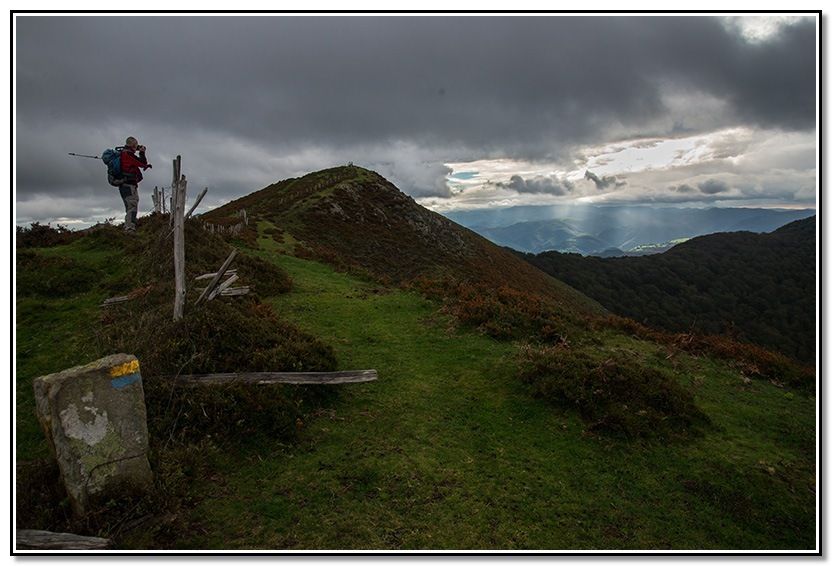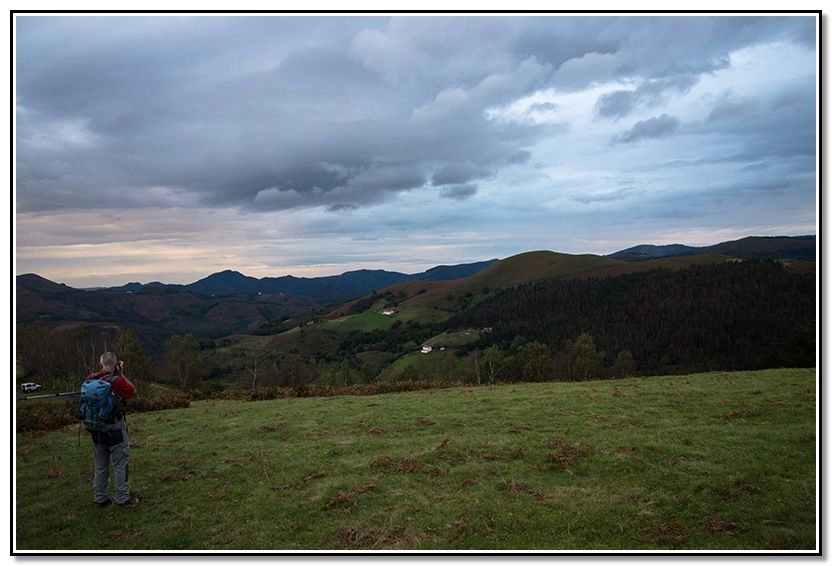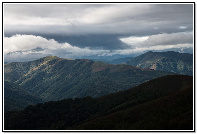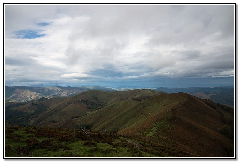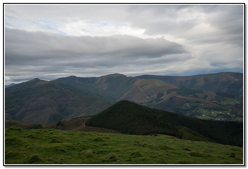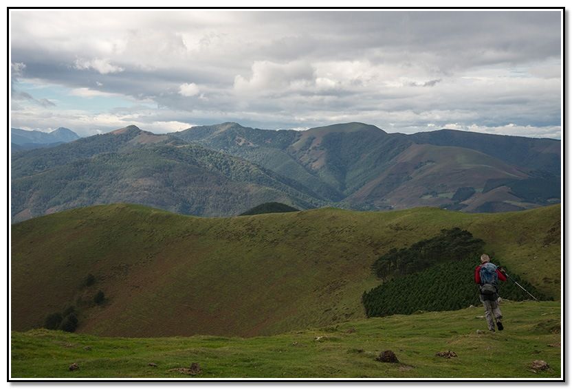 Aunque al principio calleron algunas gotas al final no pasó a más aunque venían unas nubes del sur que parecían que iban a descargar pero no pasó a más. Al final, incluso salió el solecillo y terminó haciendo calor según ibamos bajando hacia Goizueta.