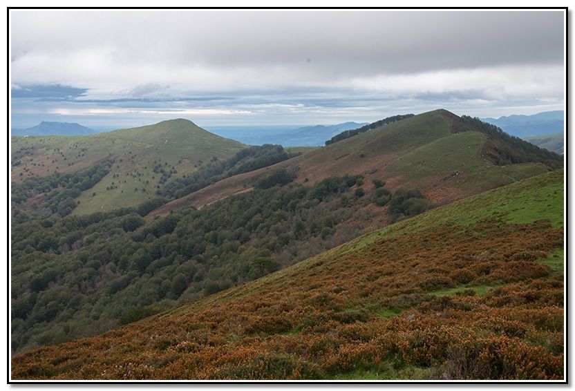 Seguimos por las lomas, Arramaletako Kaskoa, Mendibilla y Amonamotzeko Kaskoa al fondo.
