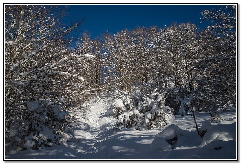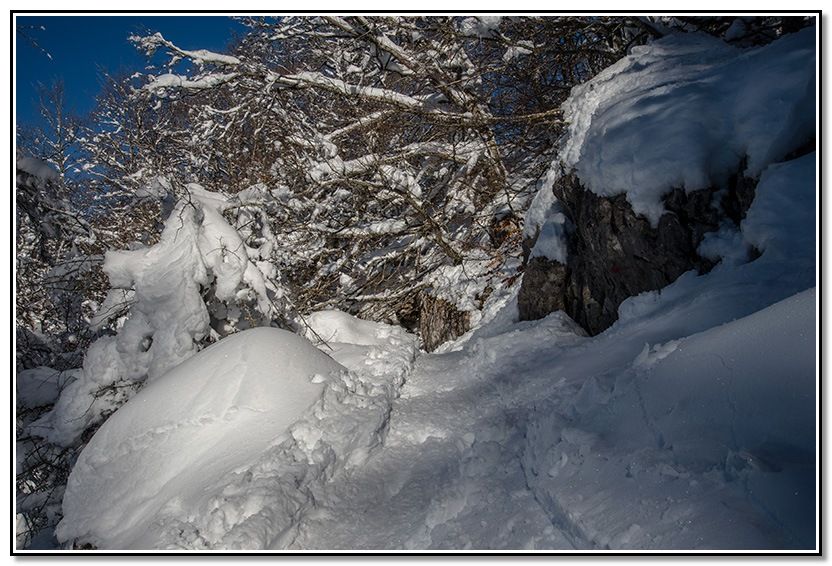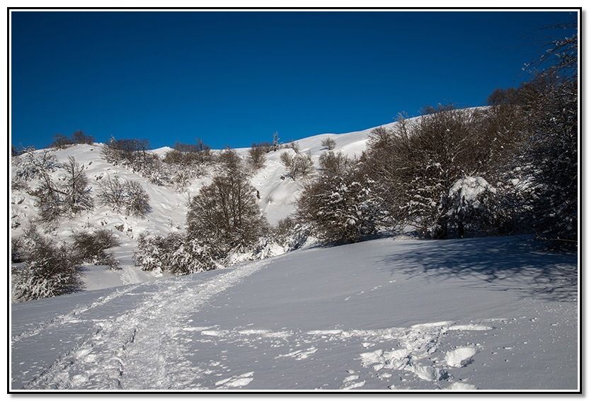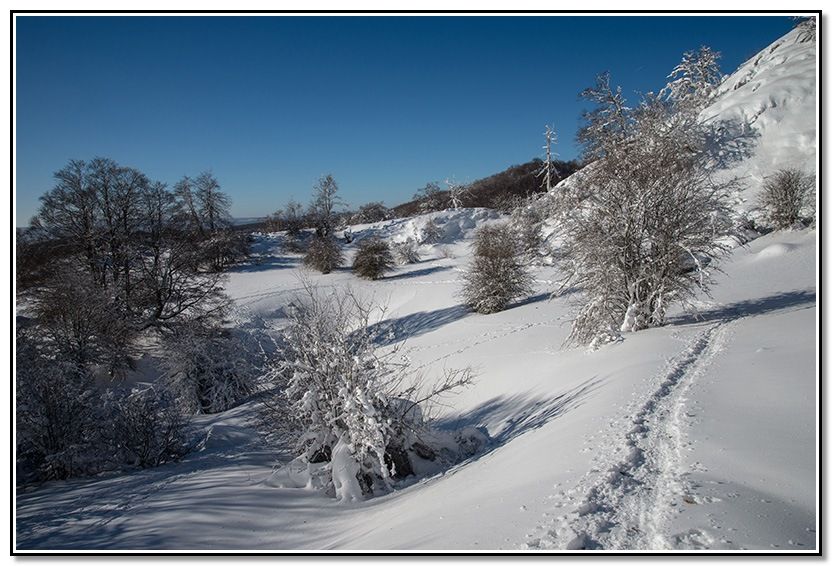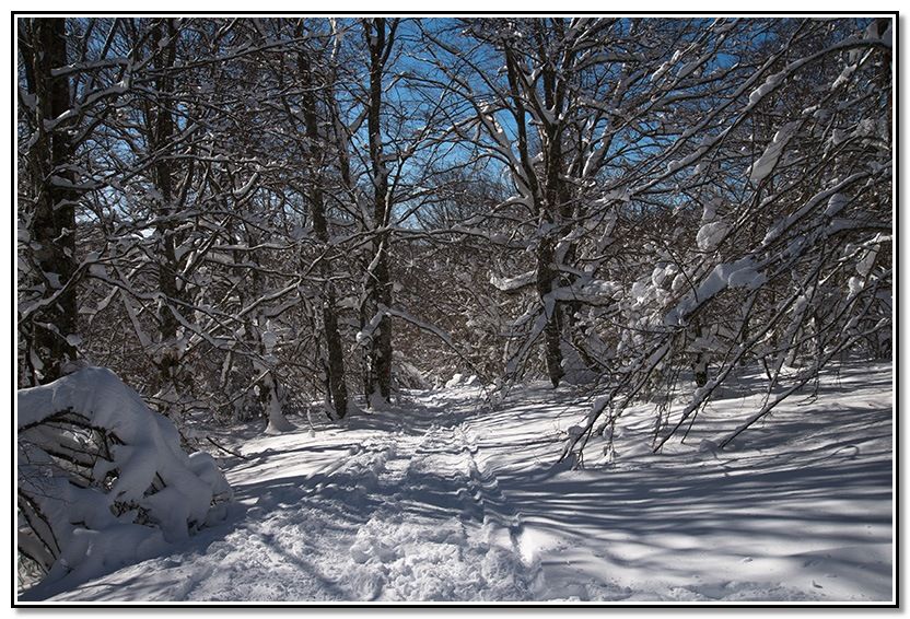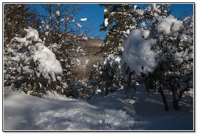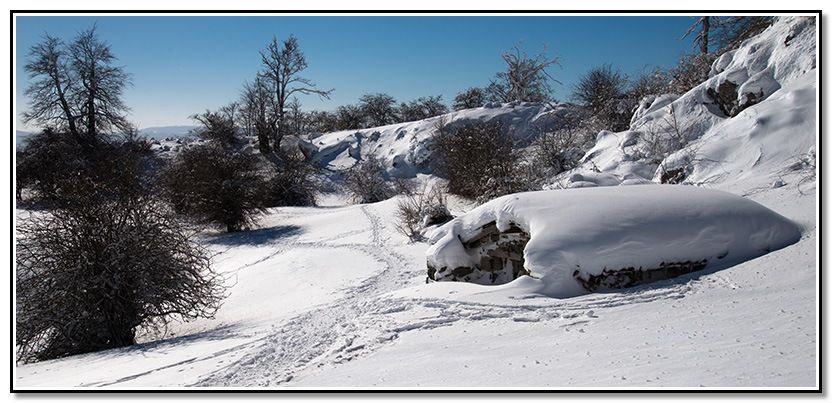 Me meto por el sendero tapado por la nieve.