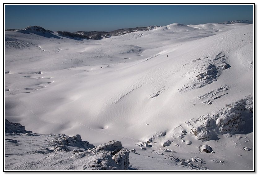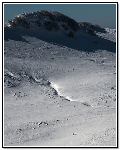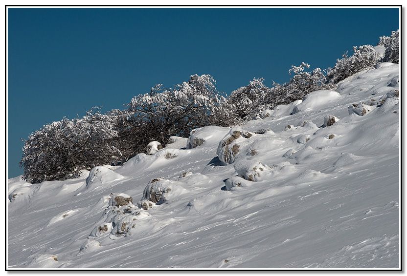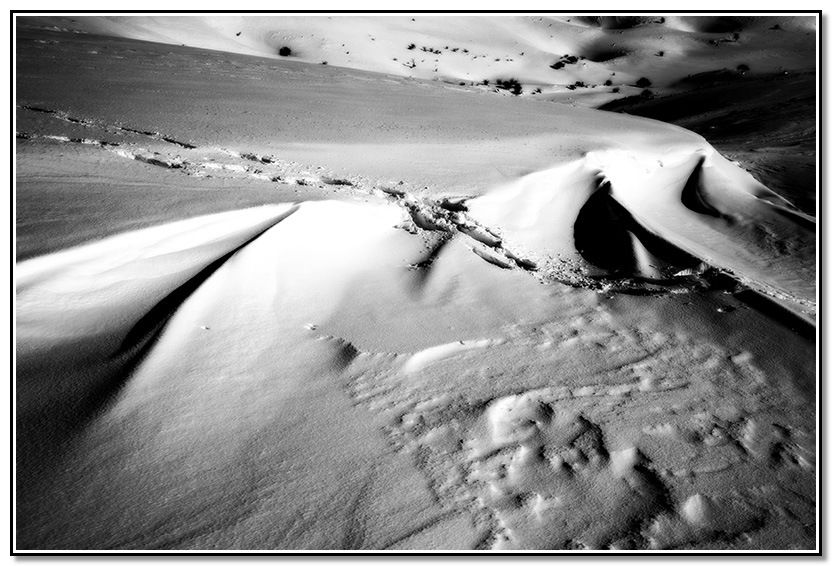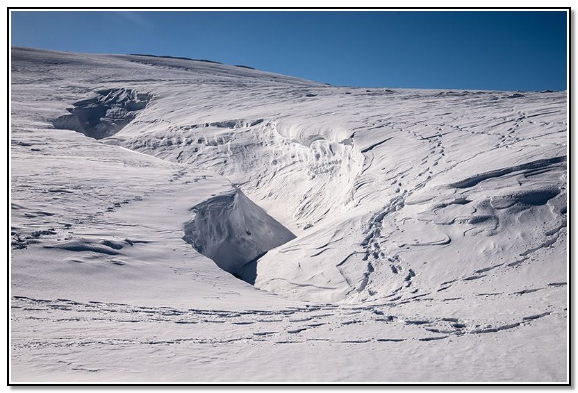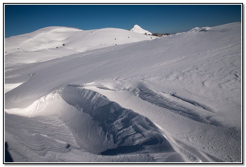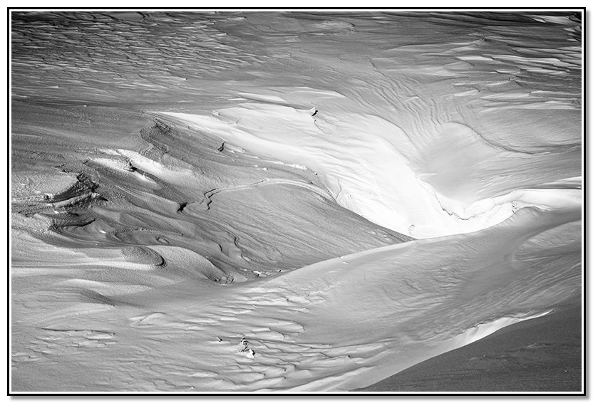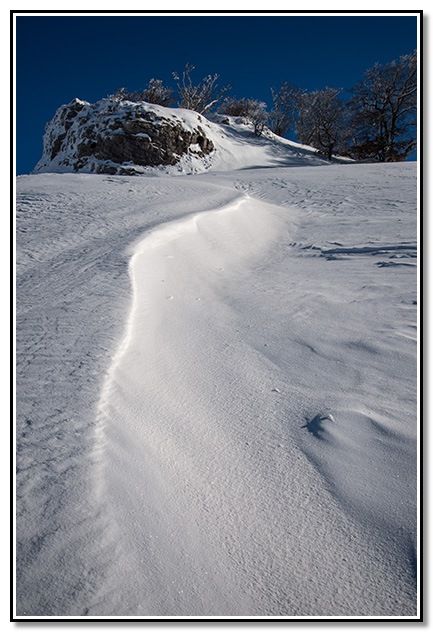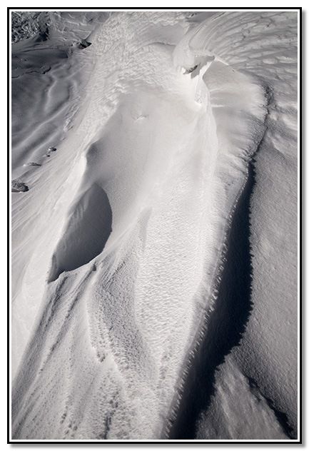 Me entretengo entre las diversas formaciones de la nieve a causa del viento.