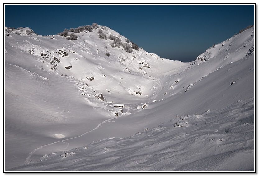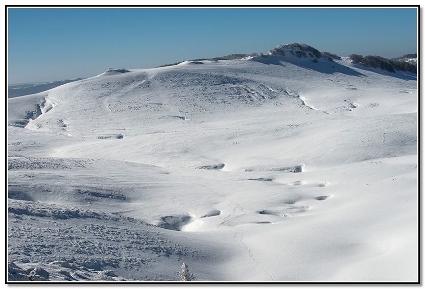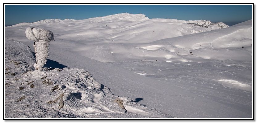El cielo despejado, pero en las cimas hacía ventarrón. La temperatura era de 3 grados pero la sensación era mucho peor, que frio !!!