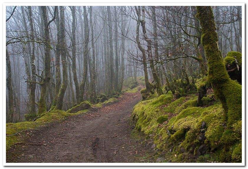 Seguimos un bonito sendero entre niebla y hayas. Da gusto andar por estos lugares.