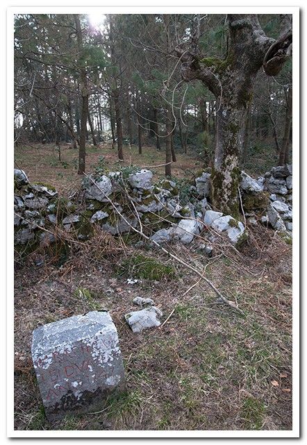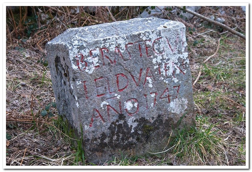 La muga de Irumugarrieta, la fecha es 1747. Es el punto de unión entre Berastegi, Gaztelu y Elduain.