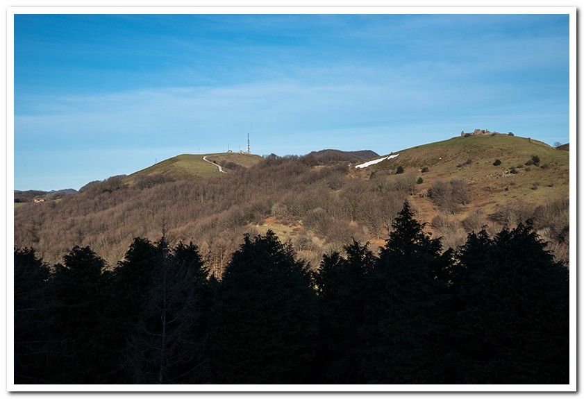 Benta Quemada y las lomas de Berriozokoa con sus antenas y Gazteluzarra con su castillo.