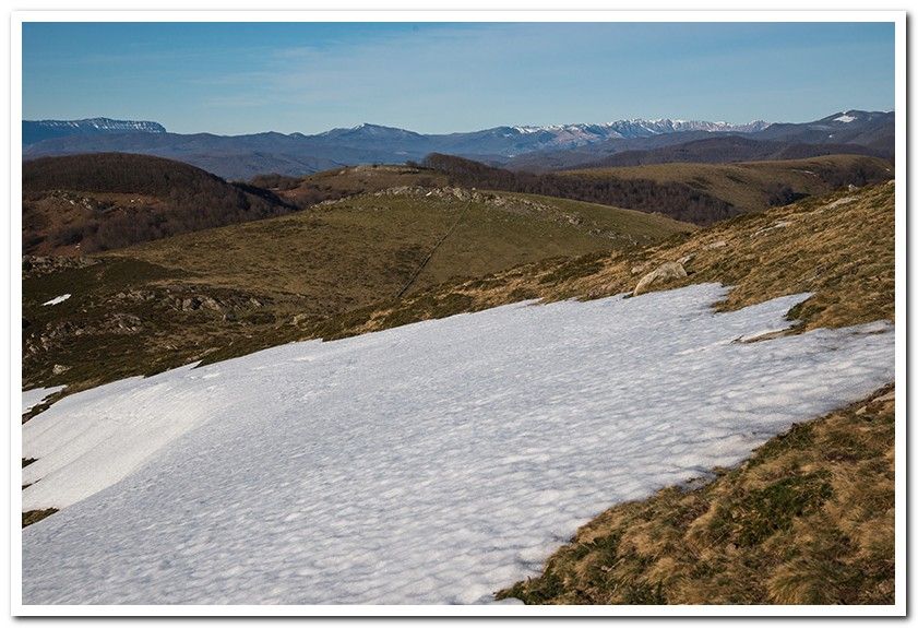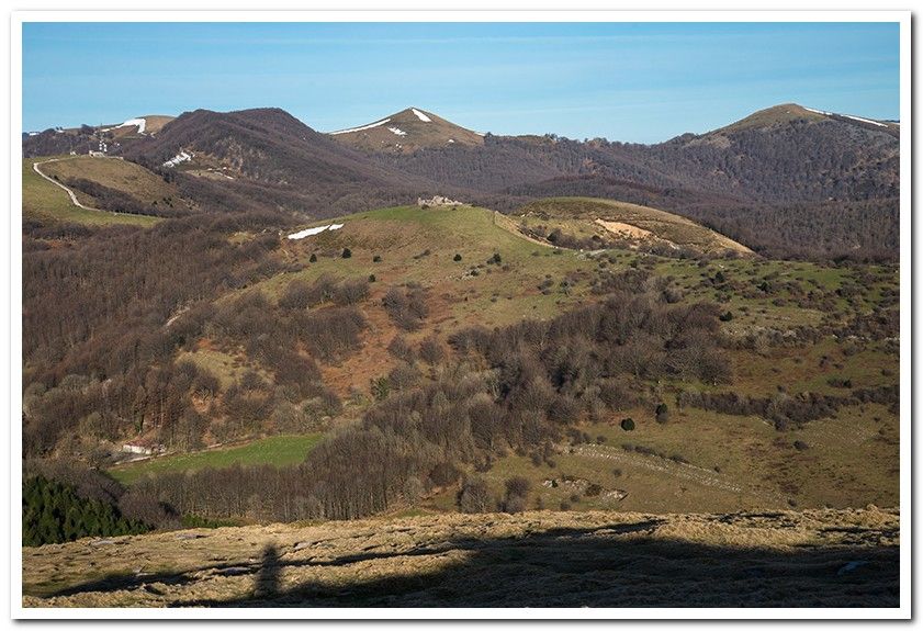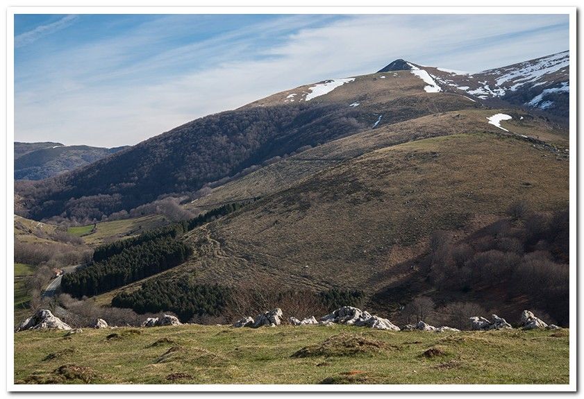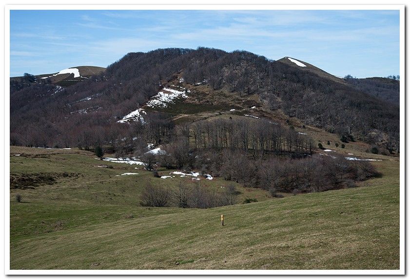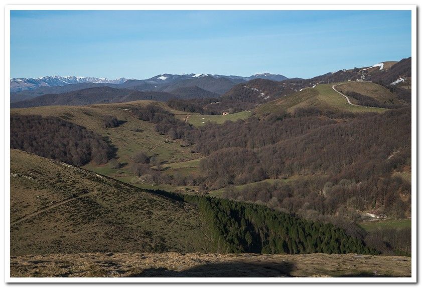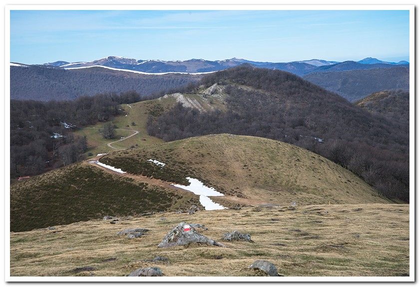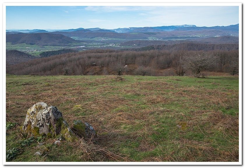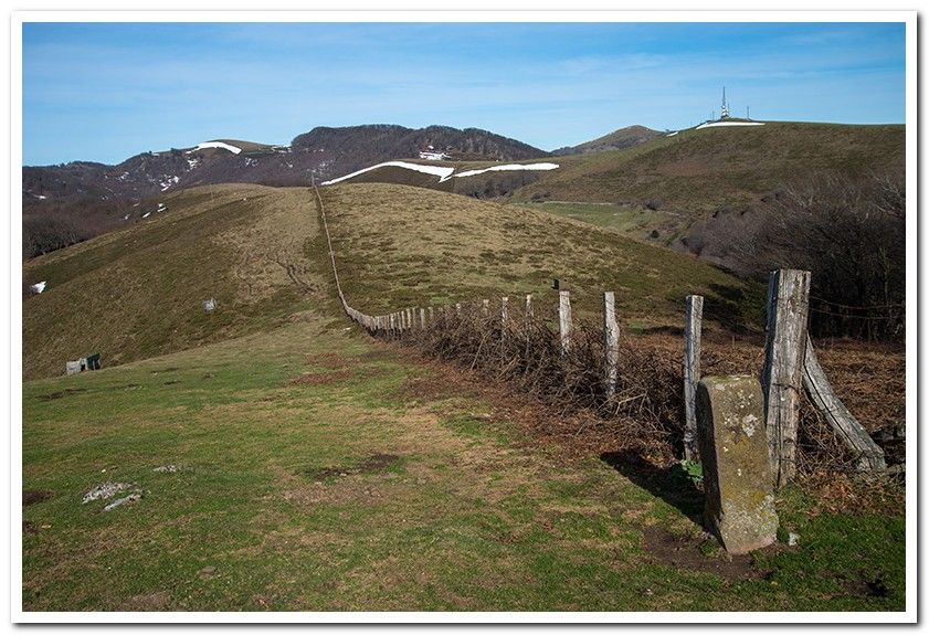 La muga entre Aramotz y Elizondo me dirige la vista hacia Putzuetakogaine, Uztalakortako gana, Txaruta y Berriozokoa.