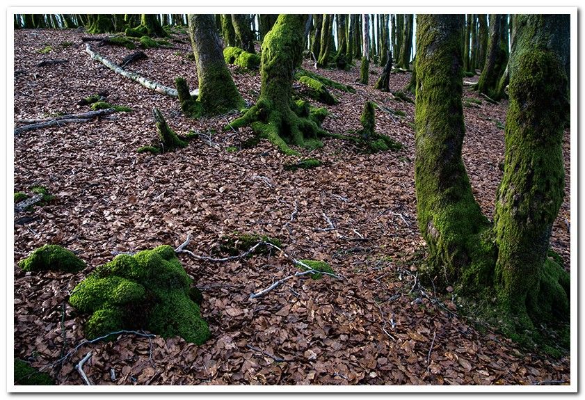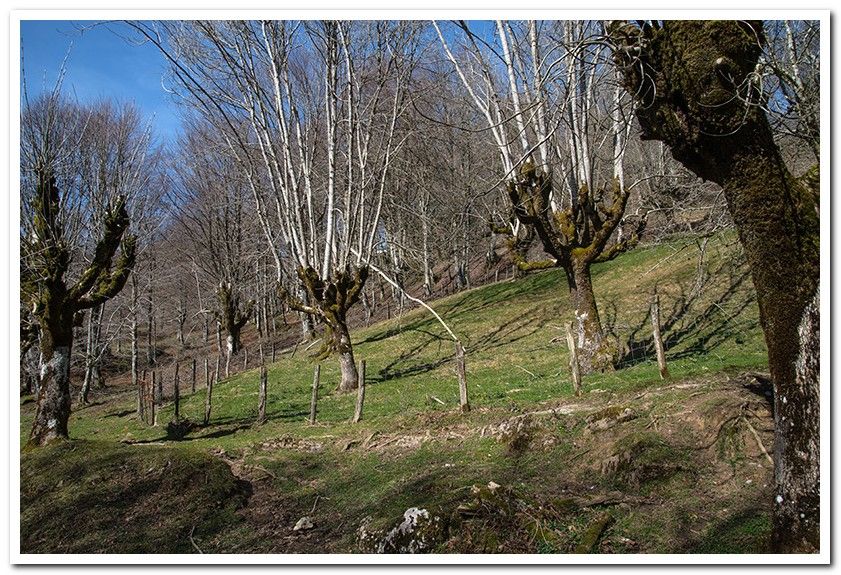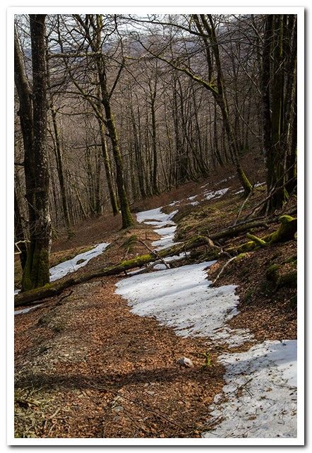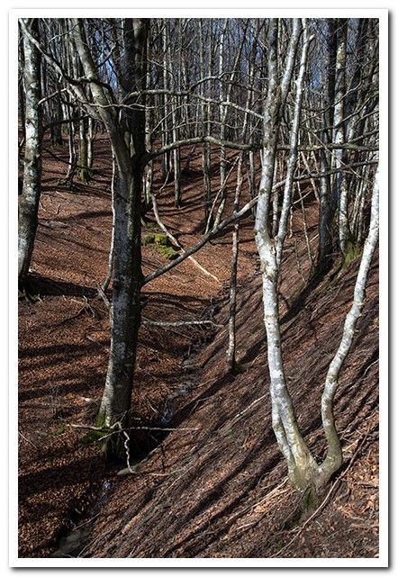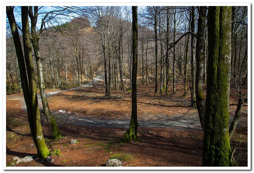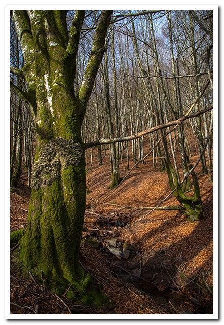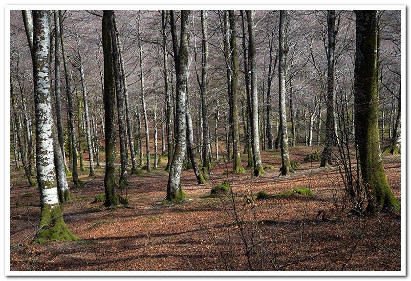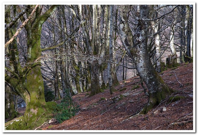 Cruzo la carretera y me meto en un hayedo muy bonito a esas horas de la mañana.