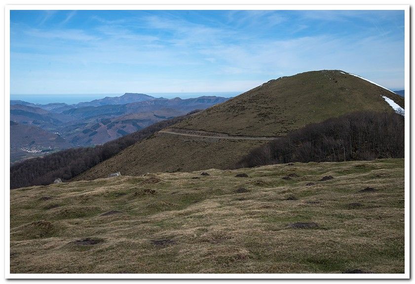 Llego al Putzuetakogaine para distinguir el Eteniko Gaina, el cromlech de Etene en su cima y Pagoaundi.