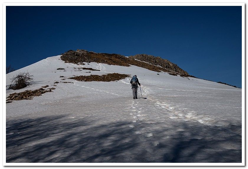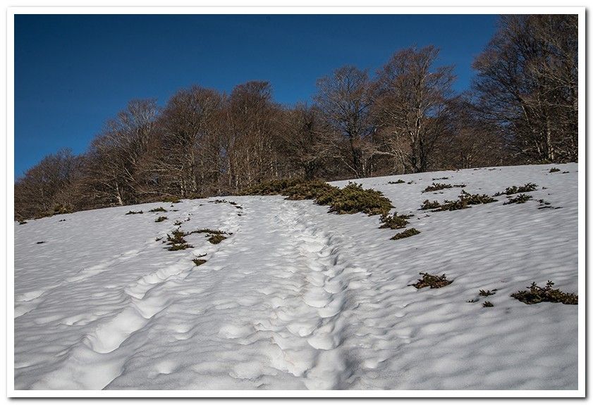 Bajando al collado ya vemos la nieve de las lomas de Arnaiza.