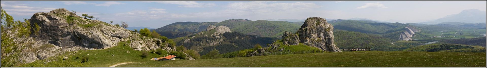 El 21 de Abril de 2011 hicimos una travesía preciosa, que la he vuelto a repetir alguna vez. La cosa es coger el tren hasta la estación de Araia en Albenitz y pasar por Umandia, bajar por el hayedo hasta Atabarrate y, por Iramendi, subir a Txurrukupunta para bajar a Otzaurte. La Benta estaba cerrada !!! seguimos hacia Gaztelu-berri, Torretxulo para bajar a Etxegarate. Aquí si almorzamos algo, pintxito, cervecita y café. Ya recuperados subimos hasta Balankaleku y por Muski bajamos hasta Telleri y San Gregorio de Ataun. Desde aquí hay un sendero muy bonito junto al rio hasta llegar a Ataun. como nos sobraba tiempo parta coger al bus a Beasain tomamos una cervecita fresca, fresca. Ya en Beasain sólo nos quedaba coger el tren para volver a Donosti. Una travesía impresionante con montón de paisajes y, sin usar coche.