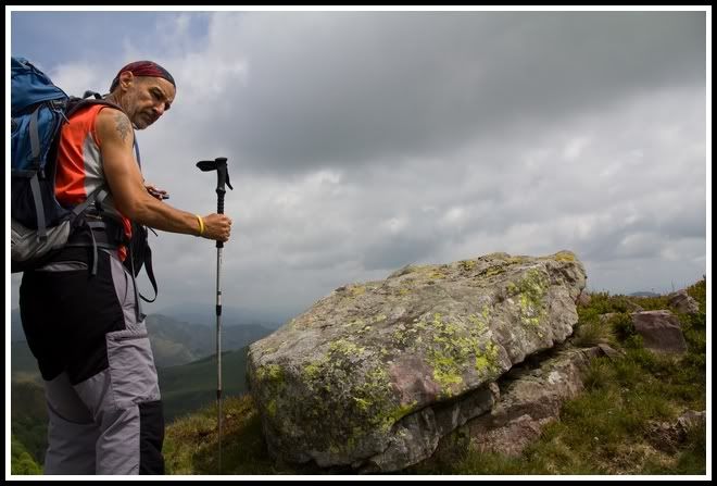 Harrigorri y Beltri llegando a la punta que se ha escapado mientras yo buscaba un dolmen