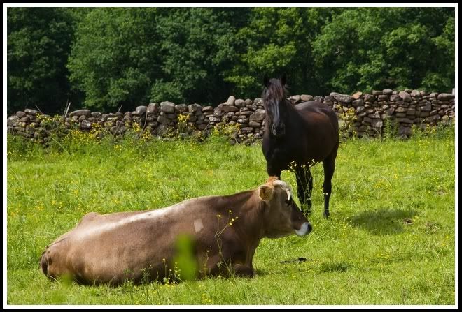 El caballo, al ver que no podia hacer nada con la vaca, vino a pedir arrumakos al compa