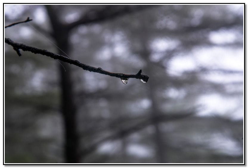 Una rama con gotitas.