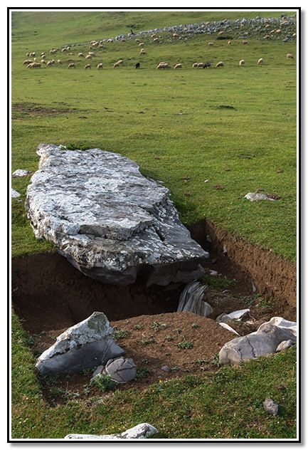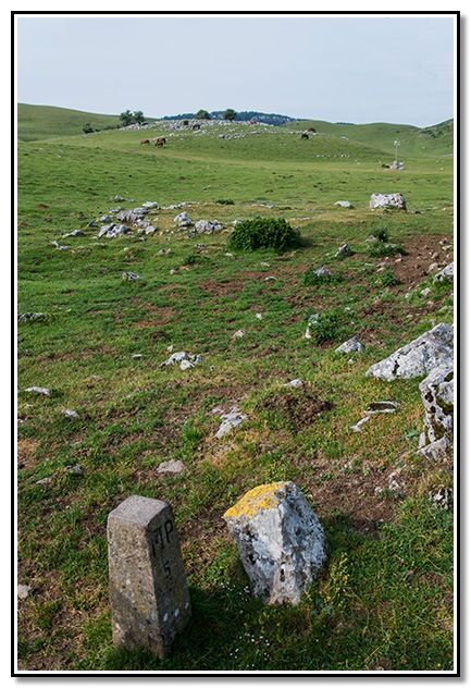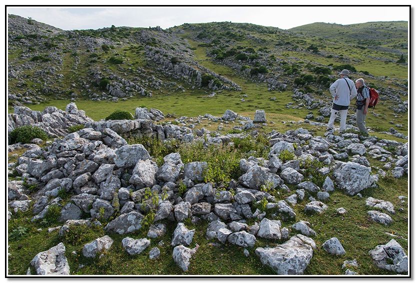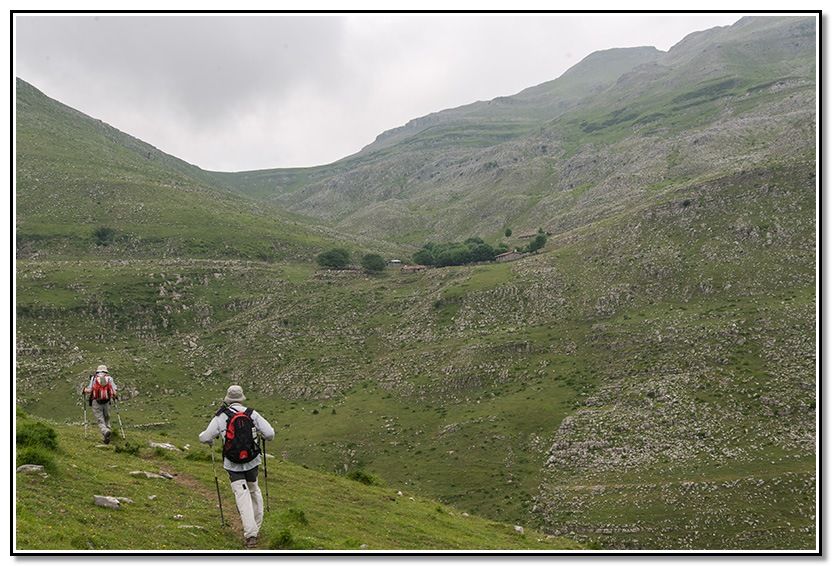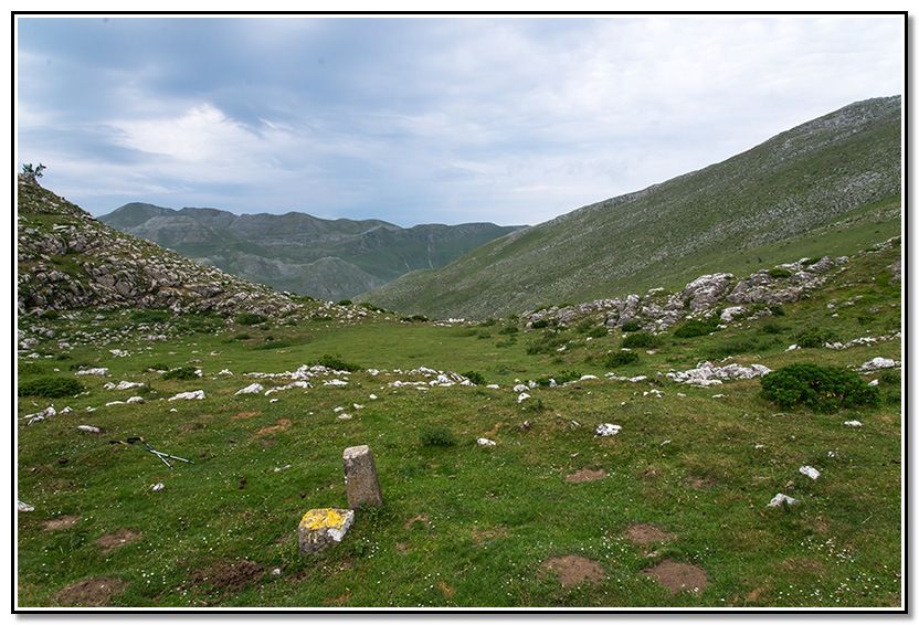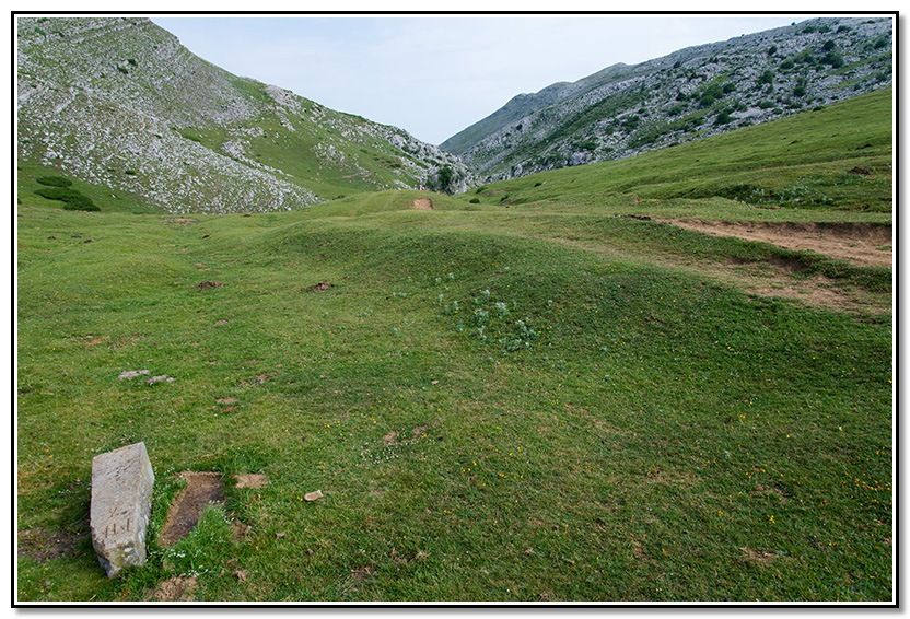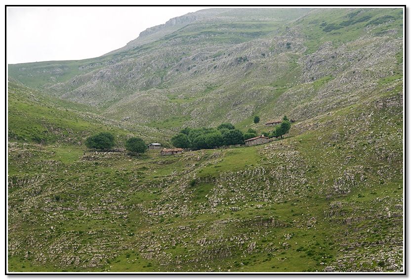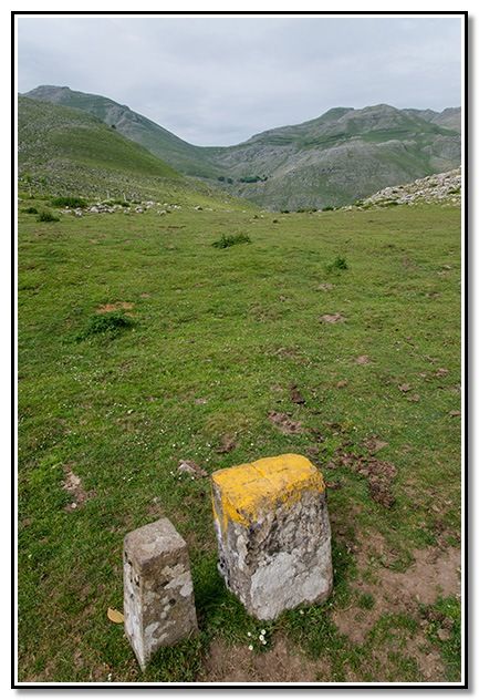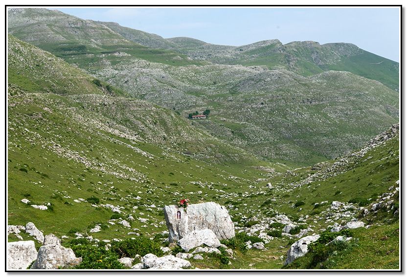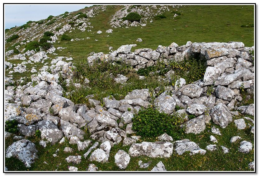 Pasamos por Amabirginaren Harria. Arriba las bordas de Pardelts.