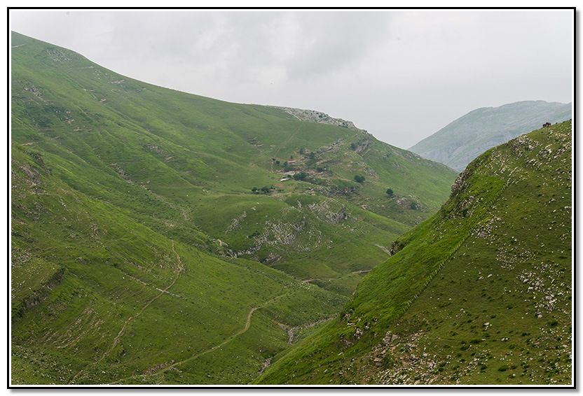 A la izquierda las bordas de Pardeluts y, a la derecha, en un vallecillo verde está el artamugarri del sel de Kitzolatz.