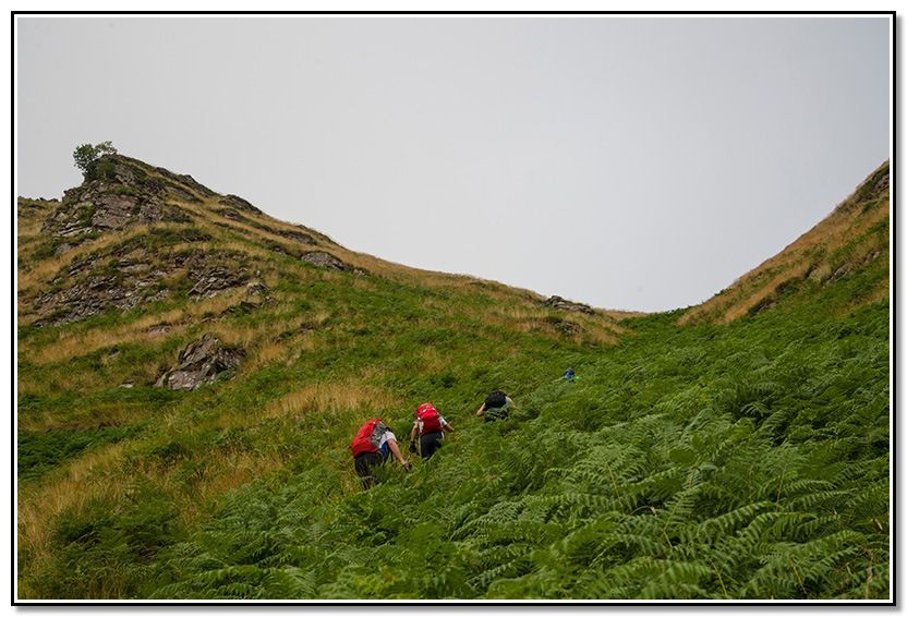 un poco el calor, subimos por la canal que lleva directamente al collado de Iparla.