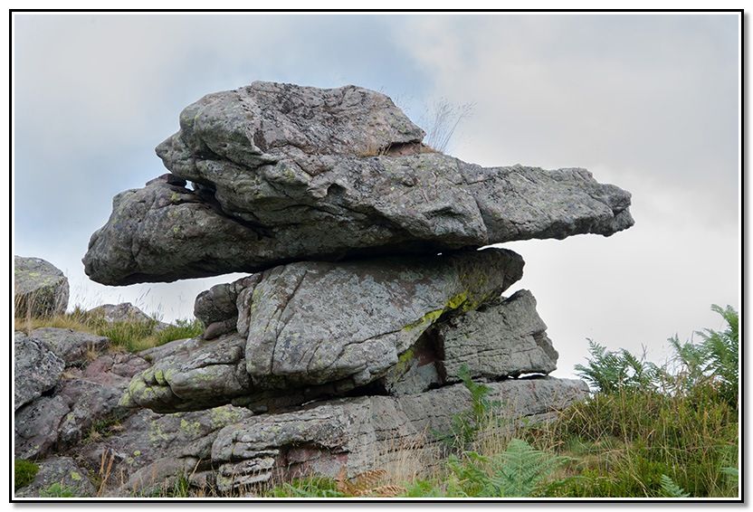 Por ahi va el sendero de bajada por Sahastegiko lepoa, el sendero bordea por debajo la gran roca.