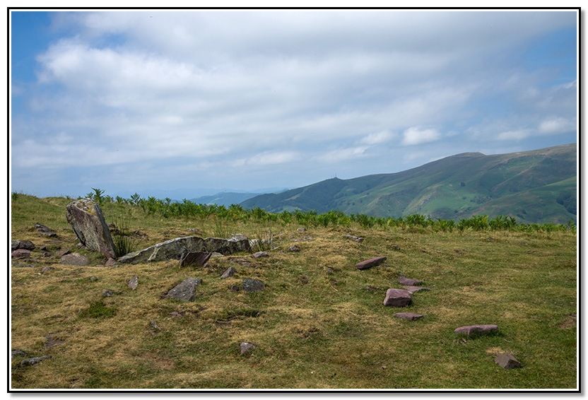 Desde el dolmen se ve las cimas de Aizpitza y parte del macizo de Gorramendi