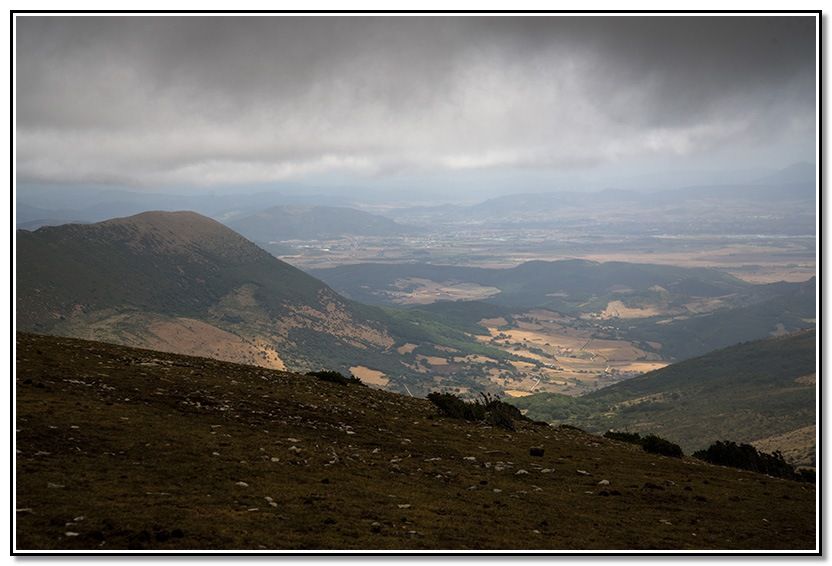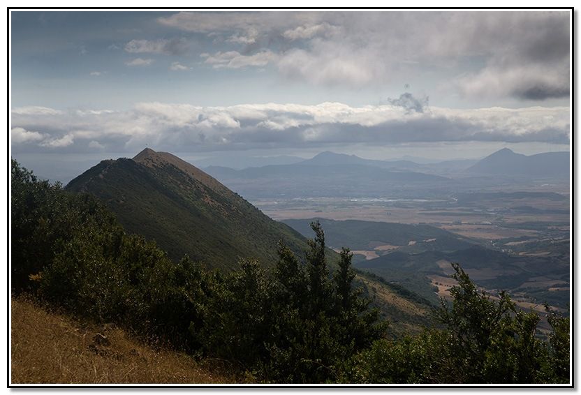 Admirando el paisaaje, Gaztelu, Txurregi. Abajo se quedan los pueblos de Ollo, Senosiain, la cuenca de Iruña y Peña Izaga.