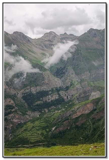 El bonito valle de Ripera, Pico de las Escuellas, Sierra de Tendeñera cubierta por la niebla