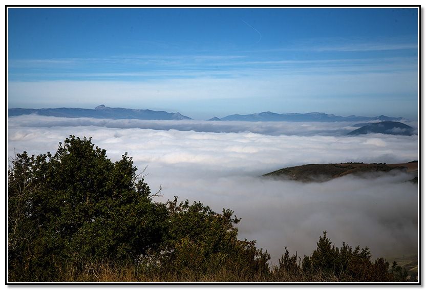 Encima de las nubes, el Irulegi ya se ve a la derecha, allí vamos.